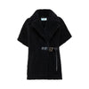 Gilet in faux fur effetto montone, regolabile in vita con cinturino in tono. Caldo e avvolgente, ha maxi revers, maniche corte a kimono, tasche inserite ai fianchi. Perfetto per creare outfit di stagione che non passano inosservati.