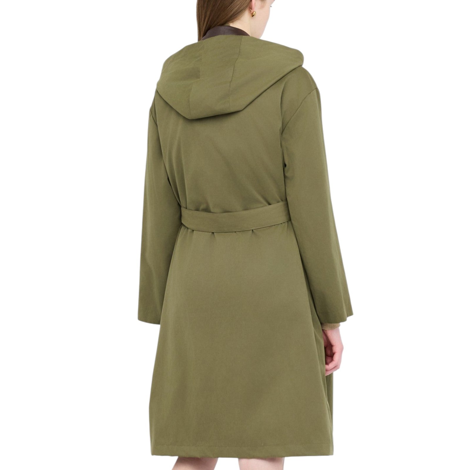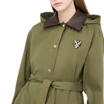 Giacca lunga in misto cotone. Colletto in tessuto spalmato. Maniche lunghe con fodera stampata. Gilet interno in tessuto stampato. Comode tasche. Chiusura con zip a doppio cursore. Cintura in tono colore. Cappuccio.