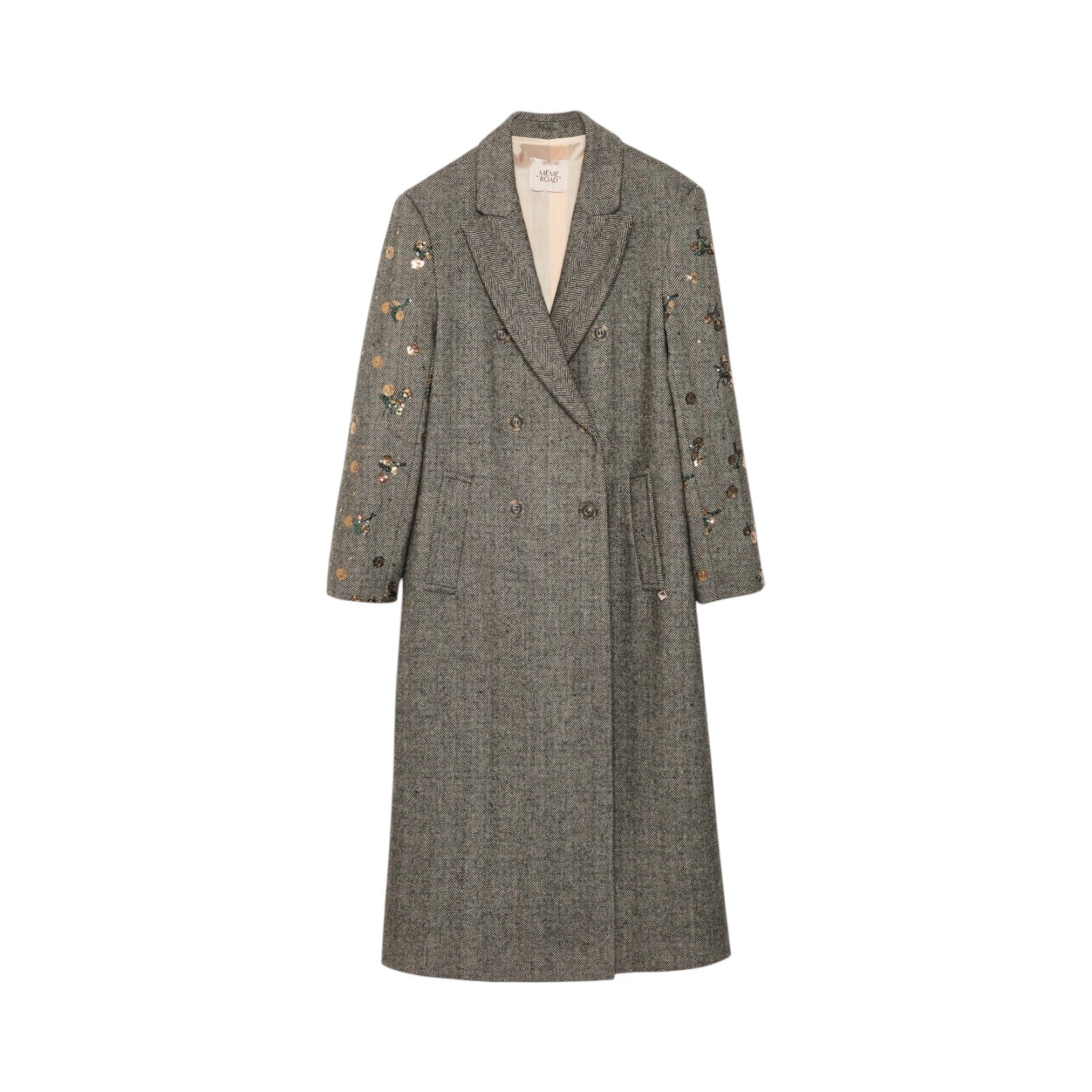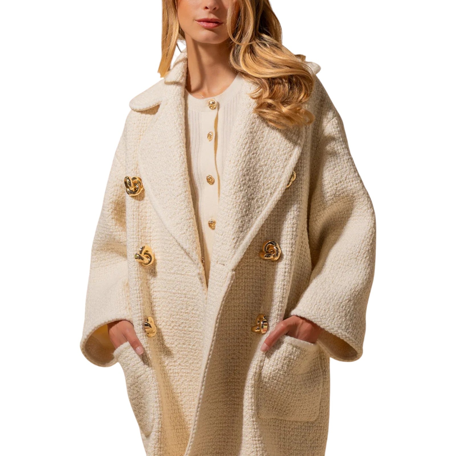 Cappotto donna crema in misto lana testurizzata con bottoni a cuore dorati