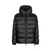 Realizzato in nylon lucido; Chiusura anteriore con zip; Tasche frontali a filetto con zip; Cappuccio con coulisse regolabile; Fodera a contrasto; Patch After label su manica sinistra; Slash termoapplicato sul retro del capo; Pendaglio rosso portalogo After label.