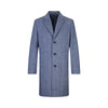 Cappotto blu. Realizzato in panno di misto lana. Motivo chevron. Collo a revers. Taschino a filetto. Tasche sui lati. Chiusura con bottoni.