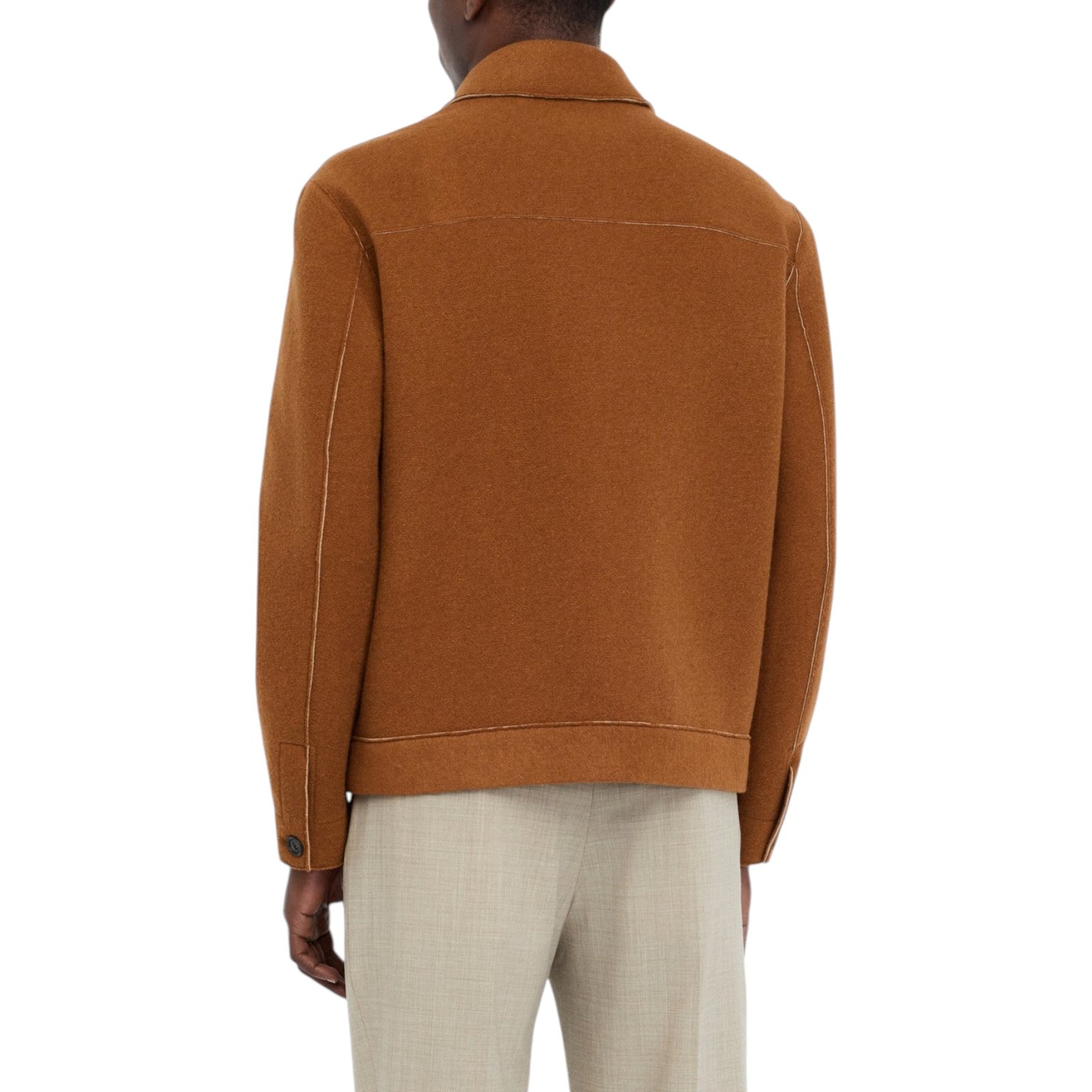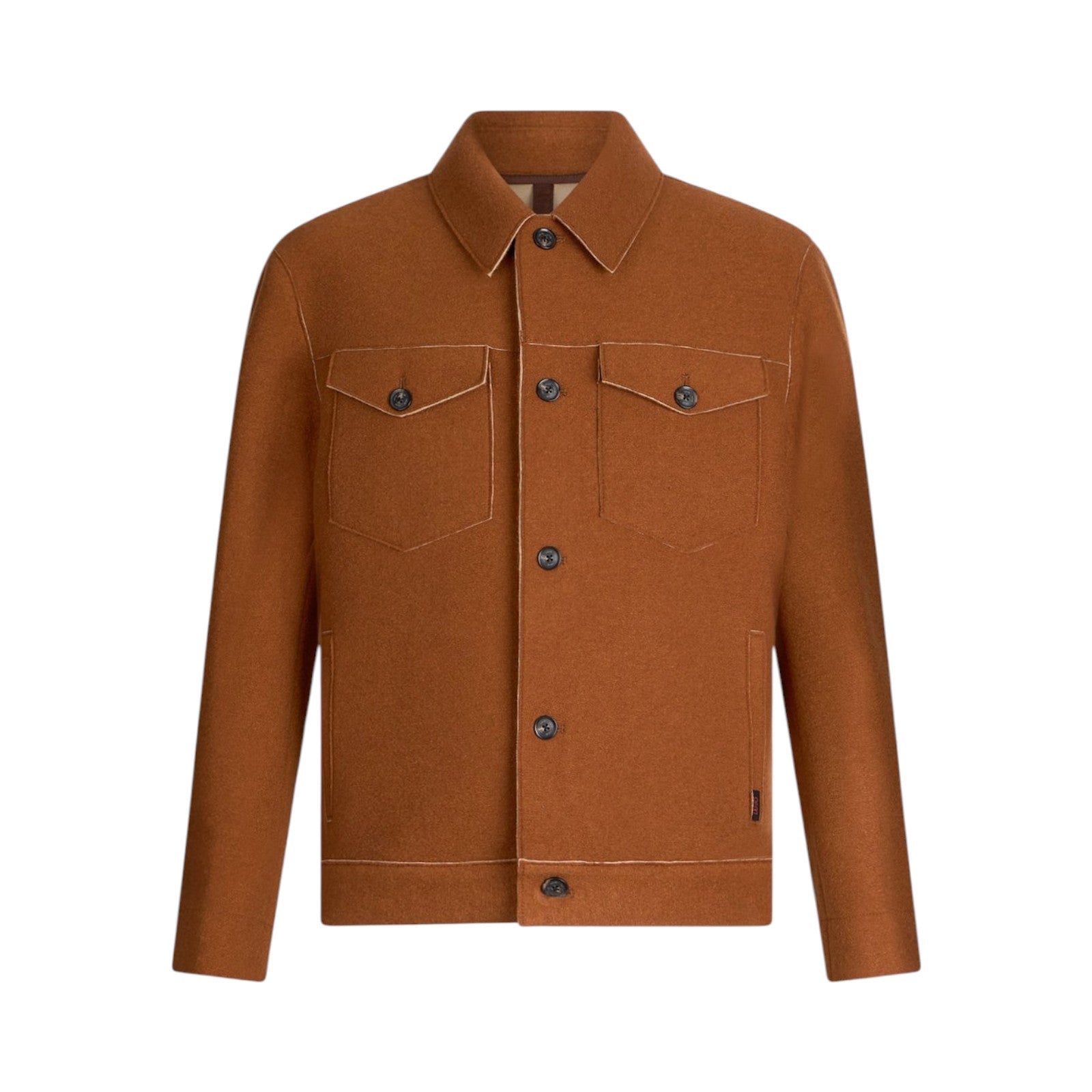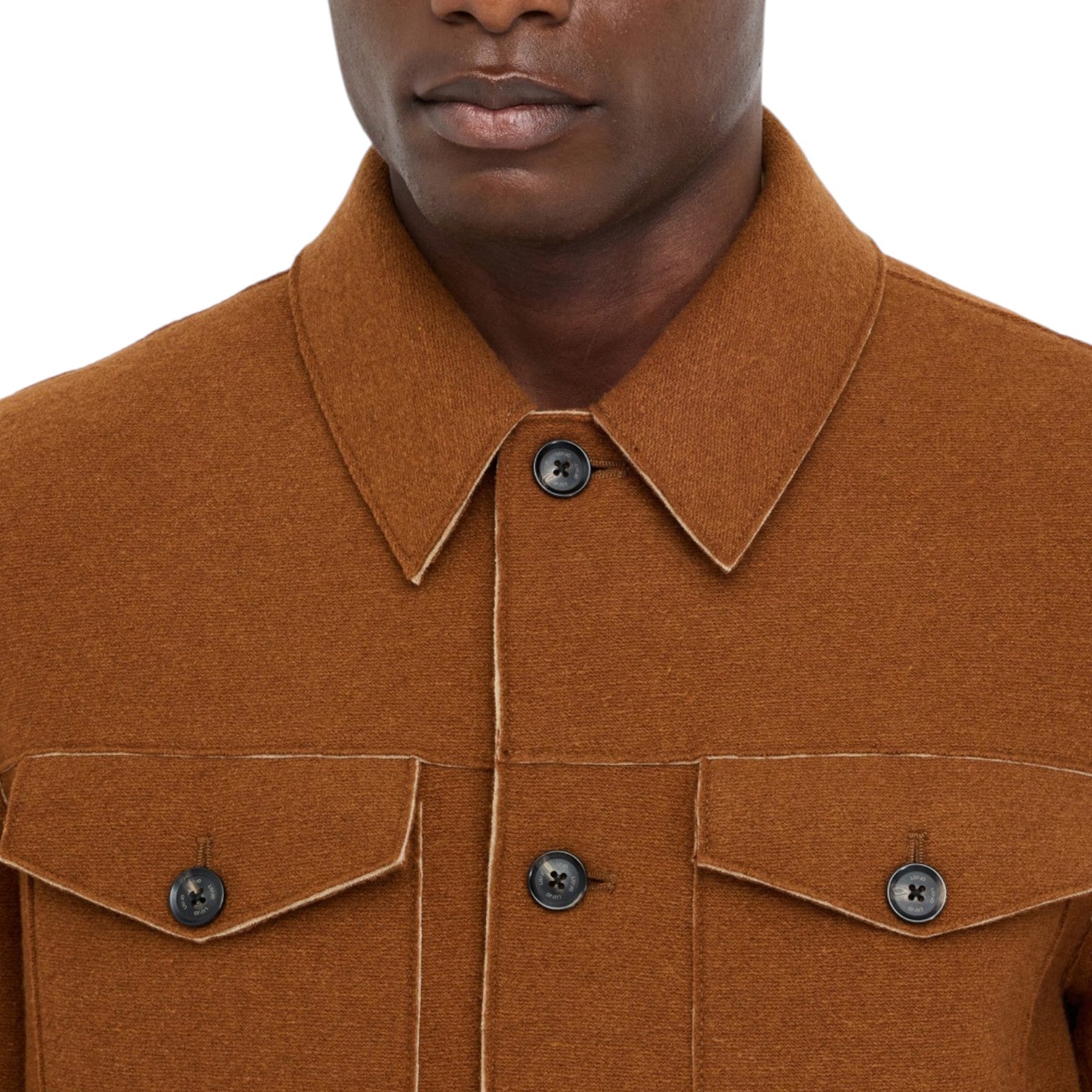 Giubbotto marrone. Realizzato in misto lana. Colletto a camicia. Taschini con patta e bottone. Tasche sui lati. Polsi con bottone. Chiusura con bottoni.