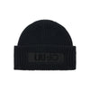 Berretto beanie nero. Realizzato in maglia a coste. Risvolto. Patch logata.