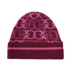 Berretto a cuffia in maglia di misto viscosa con risvolto lavorato a coste e motivo con logo jacquard a contrasto all over, portavoce dello stile PINKO.