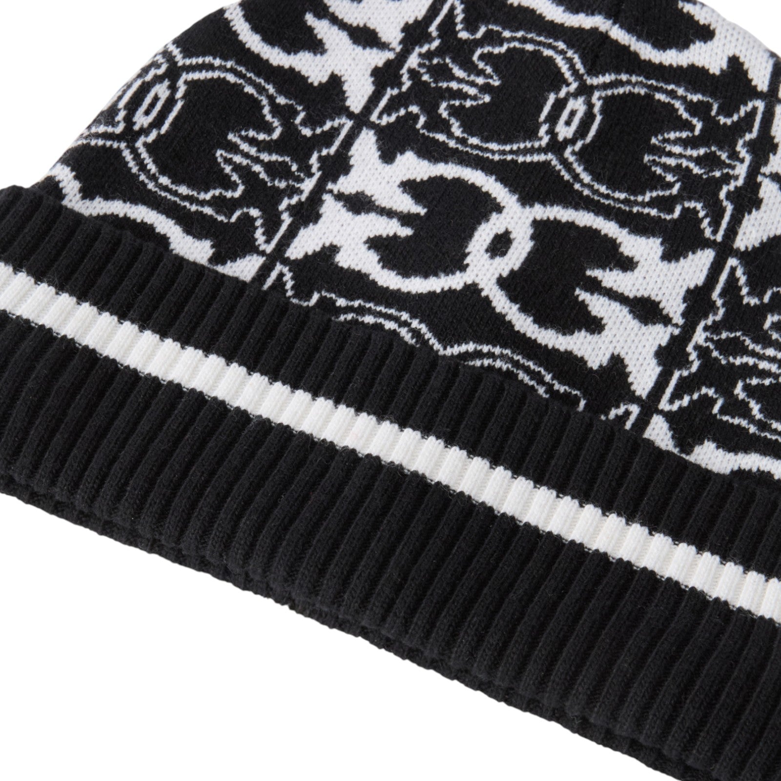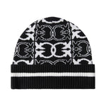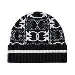 Berretto a cuffia in maglia di misto viscosa con risvolto lavorato a coste e motivo con logo jacquard a contrasto all over, portavoce dello stile PINKO.