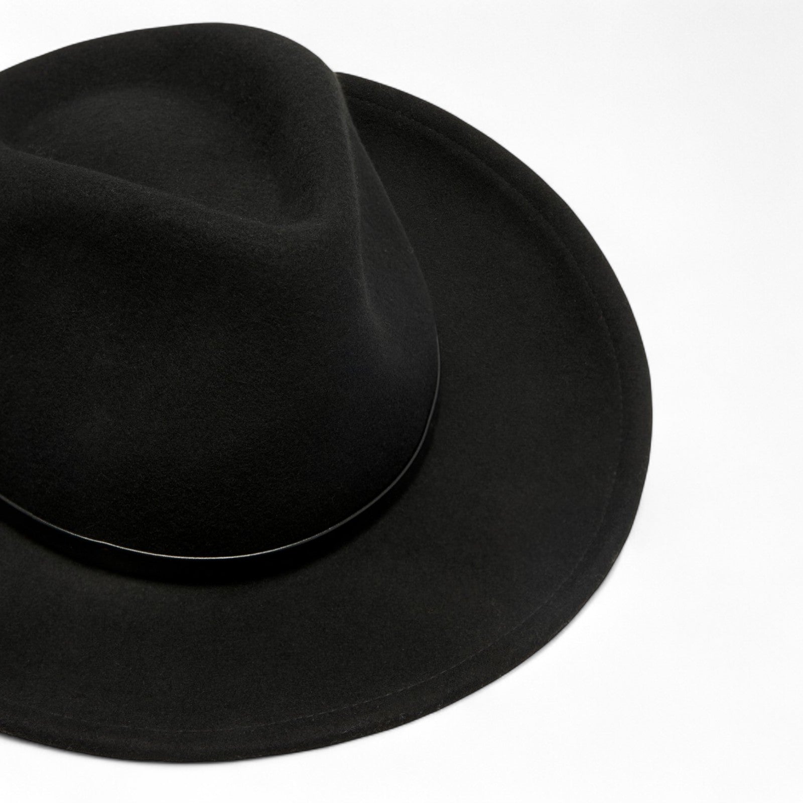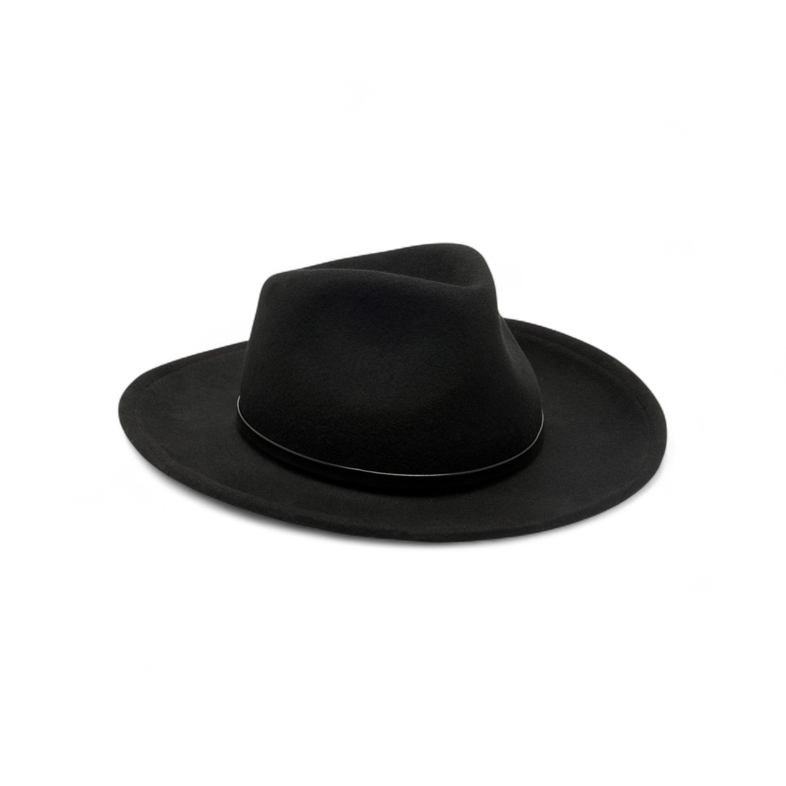 Cappello in lana. Cintura con logo in metallo. Tesa larga.