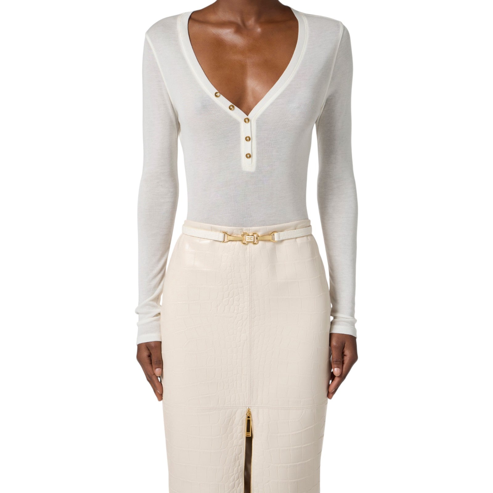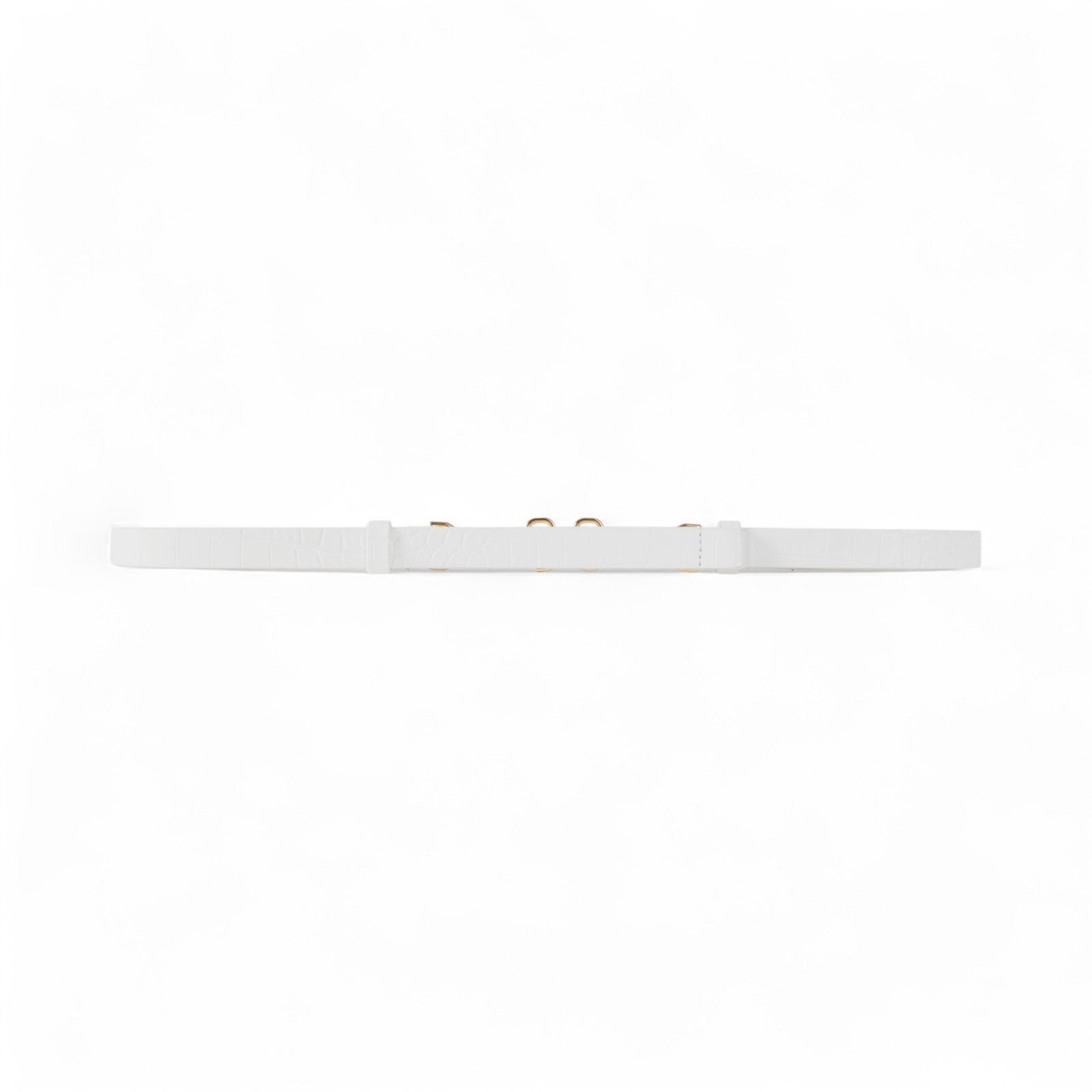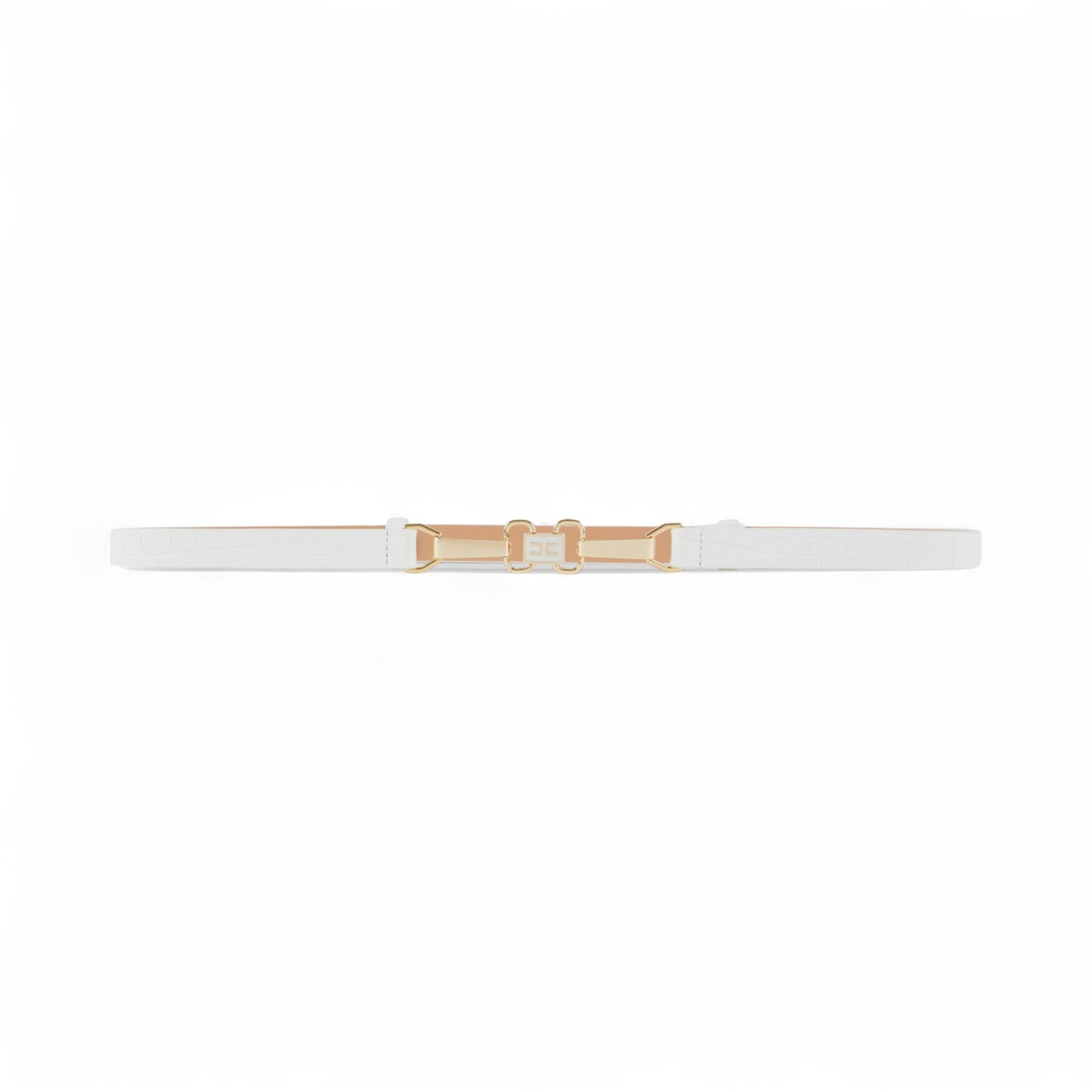 Cintura a vita alta realizzata in materiale sintetico effetto pelle. È impreziosita dalla fibbia con morsetto gioiello, decorata con logo.