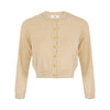 Cardigan a maniche ¾, realizzato in morbido filato di lana e cachemire. Una catena di strass è posizionata sullo scollo, la chiusura ha bottoni in metallo dorato per un mix di dettagli luminosi. Vestibilità aderente.