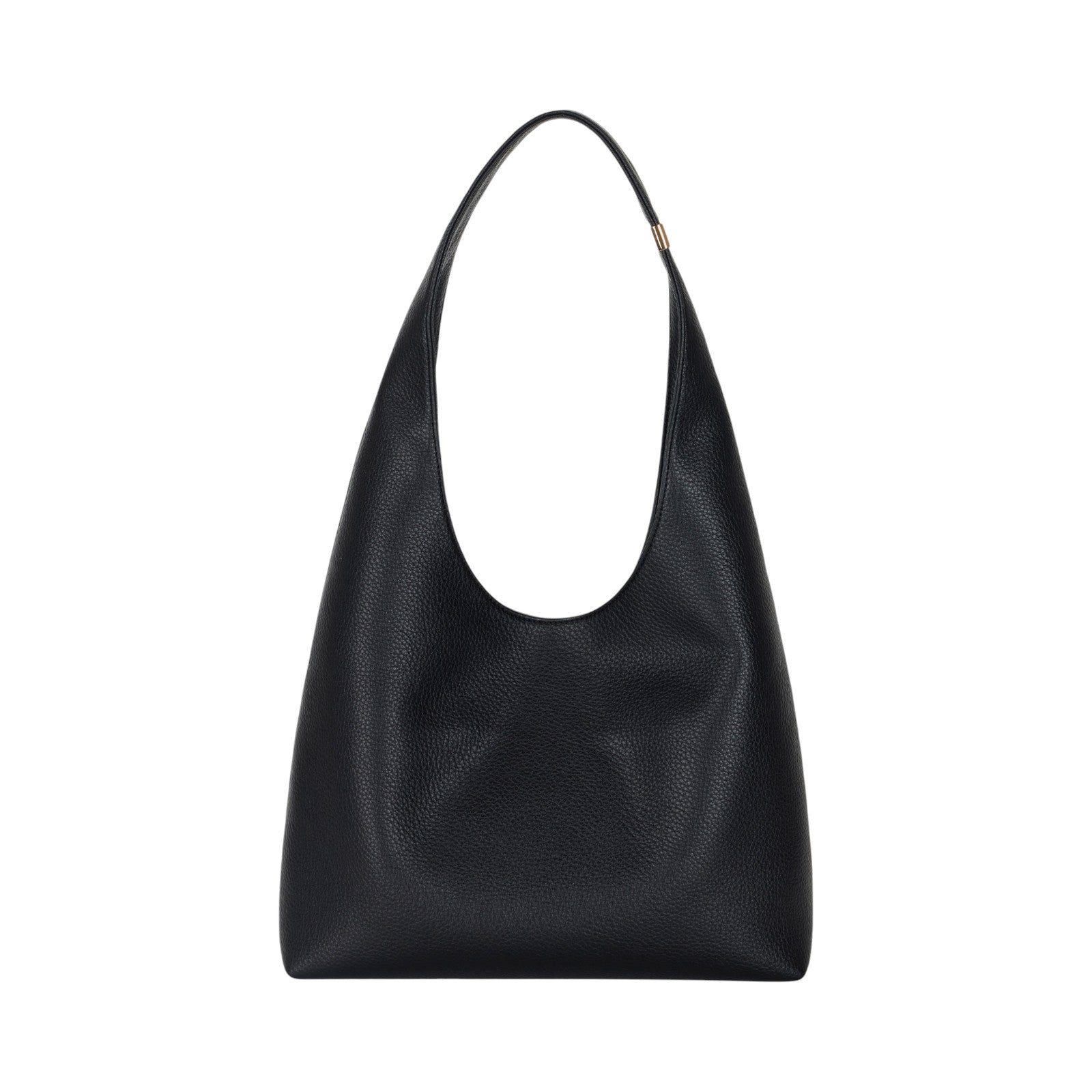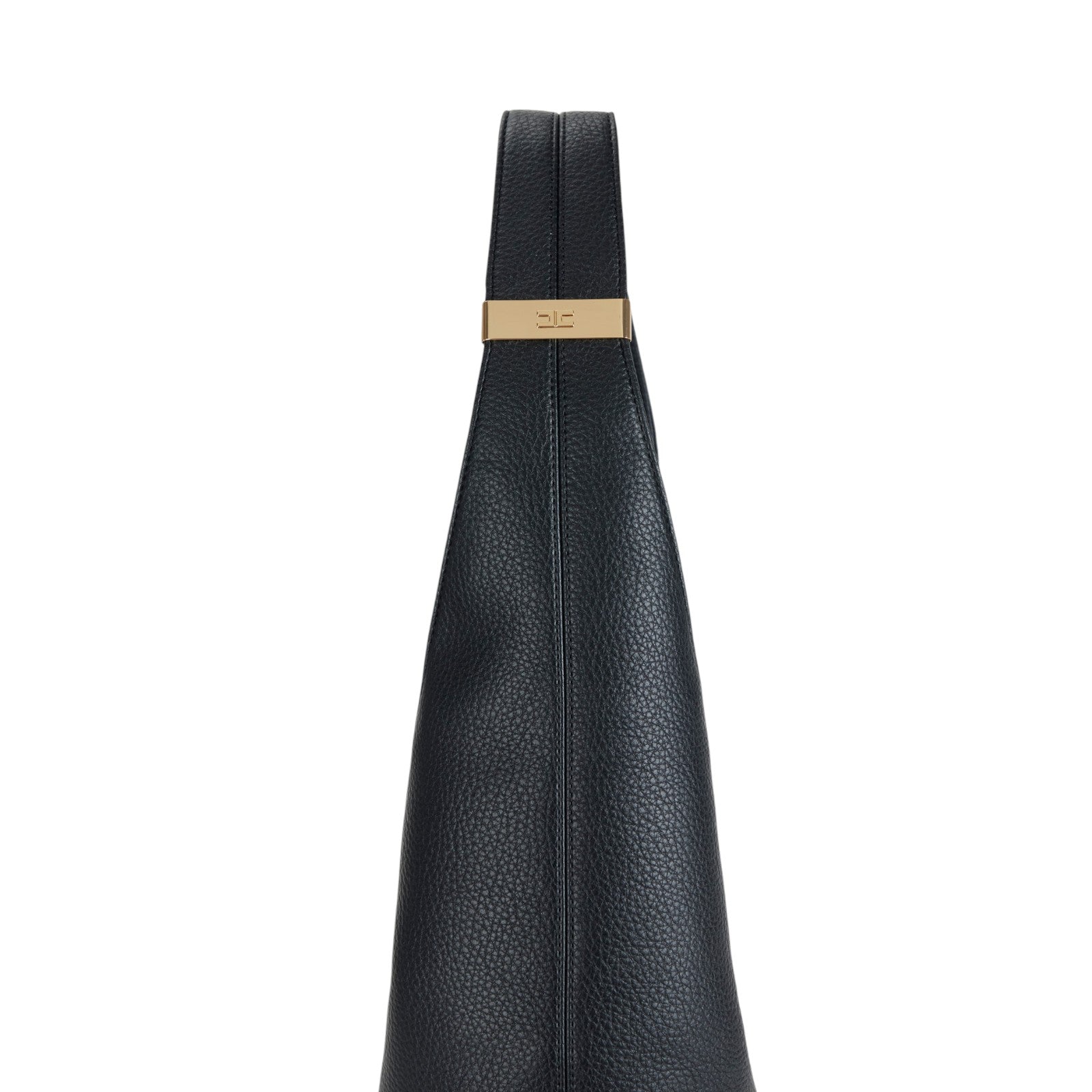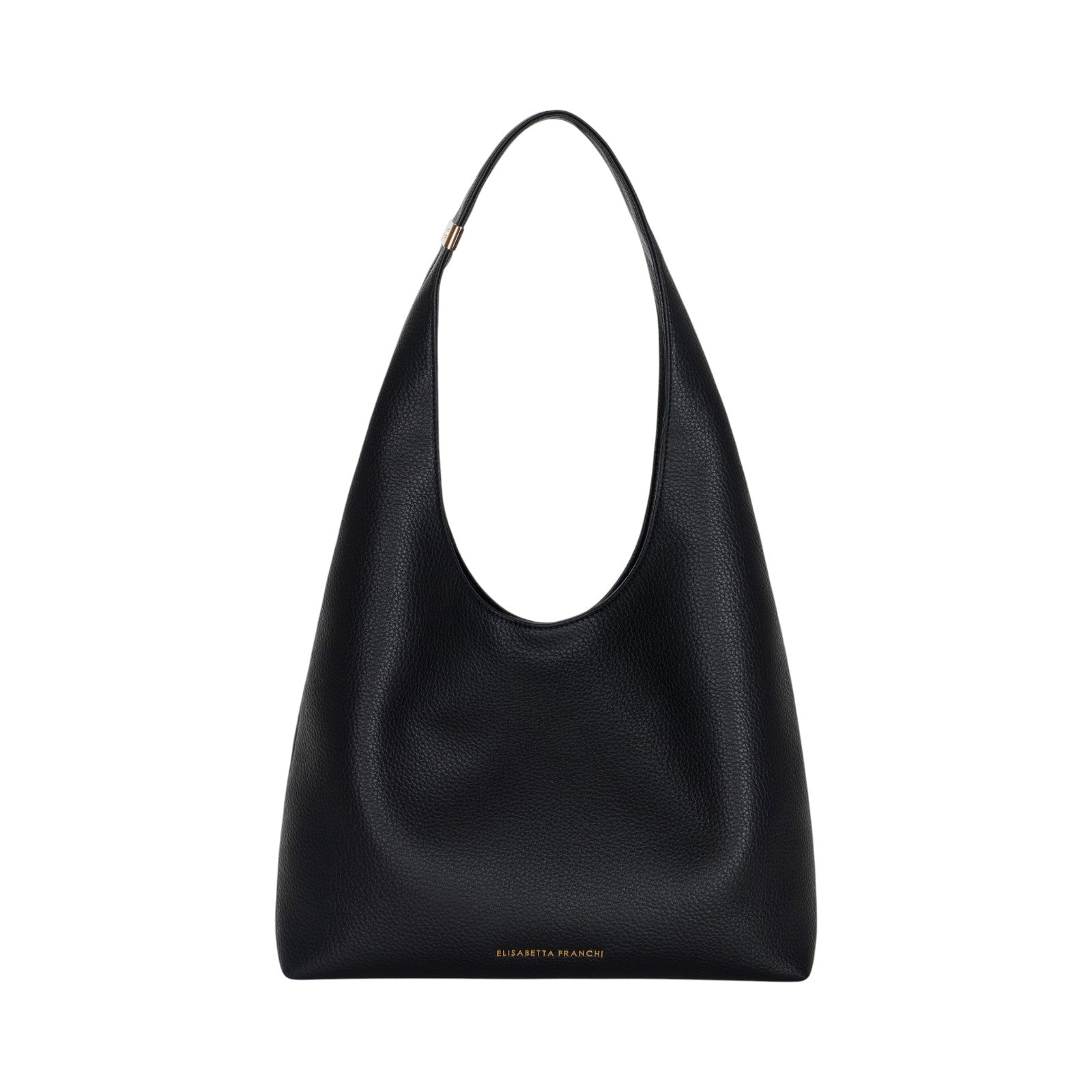 Borsa hobo grande realizzata in materiale sintetico effetto pelle. Personalizzata con logo frontale, presenta una placca con logo in metallo dorato sul manico per una nota di luce.