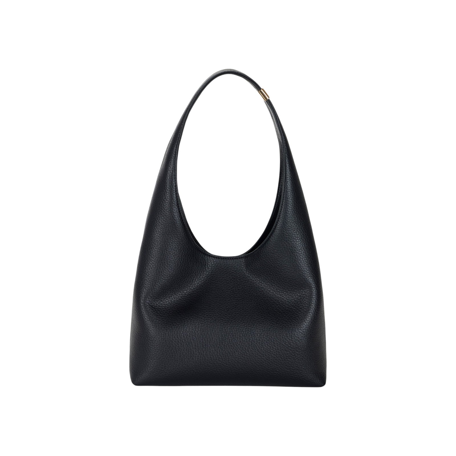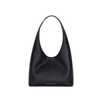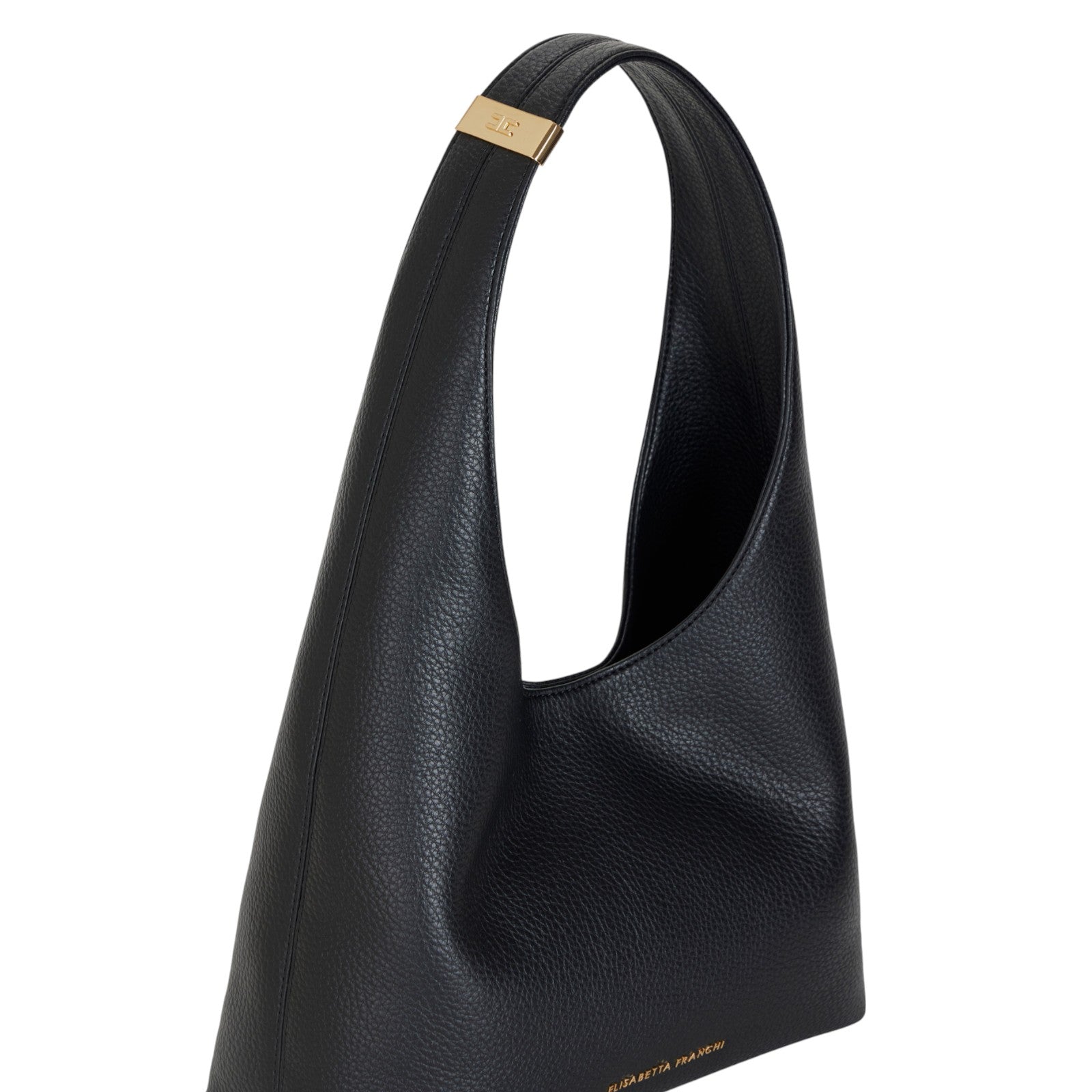 Borsa hobo piccola realizzata in materiale sintetico effetto pelle. Personalizzata con logo frontale, presenta una placca con logo in metallo dorato sul manico per una nota di luce.