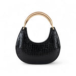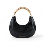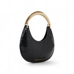 Borsa hobo piccola realizzata in materiale sintetico effetto pelle. La texture con stampa cocco dona carattere all'accessorio, impreziosito dal manico gioiello in metallo dorato. Logo al fondo.