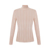 Maglia dalla texture laminata con vestibilità aderente. Con collo alto e maniche lunghe, si distingue per il finish metallico che dona riflessi inediti alla trama, definita dalla lavorazione a costine e dai delicati dettagli à jour. Etichetta con logo sul retro del collo.