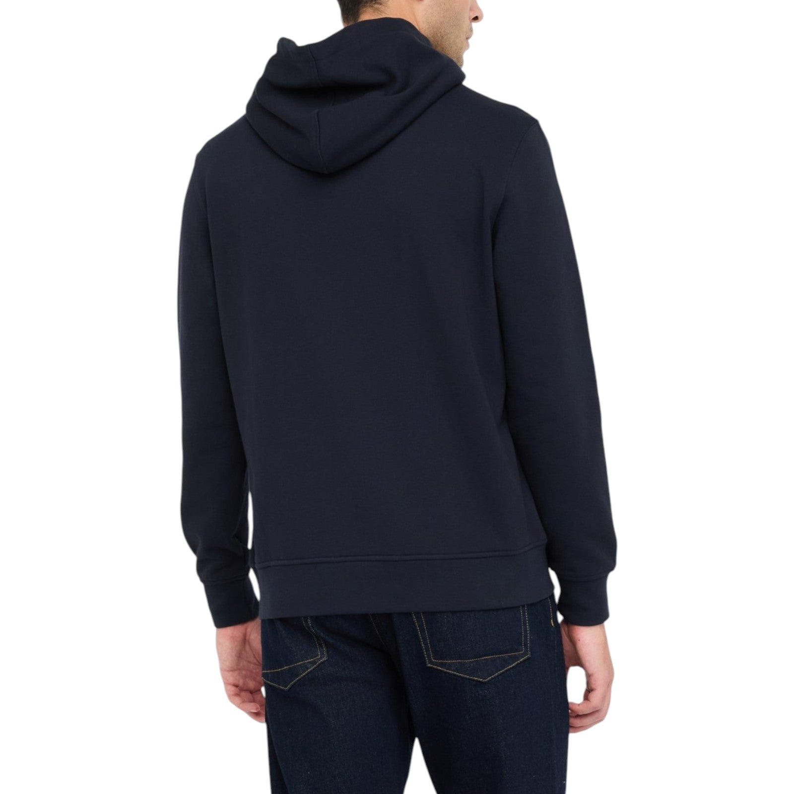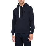 Felpa blu. Realizzata in misto cotone. Logo sul davanti. Cappuccio con coulisse. Tasche a marsupio. Polsi e fondo a costine.