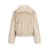Bomber in morbido tessuto teddy. Trecce sul davanti. Colletto oversize. Comode tasche. Chiusura con zip. Elastico sul fondo e sui polsi.