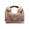 Borsa in faux fur con manico a mano in similpelle con accessorio e chiusura con magnete.