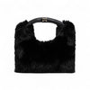 Borsa in faux fur con manico a mano in similpelle con accessorio e chiusura con magnete.