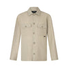 Camicia beige. Realizzata in misto lana stretch. Colletto alla francese. Maniche lunghe. Polsi con bottone. Taschini con patta e bottone. Spacchetto sul retro. Chiusura con bottoni.