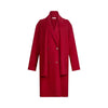 Cappotto rosso in panno double. Filati in misto lana. Rever classico. Comode tasche. Sciarpa con logo ricamato. Chiusura doppiopetto.