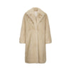 Giaccone da donna in pelliccia sintetica. Revers classico. Comode tasche. Interno foderato. Chiusura con bottoni a pressione.