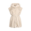 Morbido gilet in pelliccia sintetica. Trecce sul davanti. Cappuccio. Comode tasche. Cintura in abbinamento. Chiusura con bottoni a pressione.
