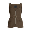 Gilet verde. Realizzato in tessuto tecnico stretch. Scollatura a cuore. Sorretto da spalline. Tasche con patta sui lati. Cintura sur ton con fibbia regolabile. Chiusura con zip a doppio cursore. Fodera interna. La modella è alta 180 cm e indossa la taglia 40.