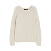 Maglia in filato di alpaca e cotone. Girocollo. Maniche lunghe raglan. Lunghezza media. Bordi rifiniti a costine.