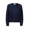 Maglia in misto mohair con patch floreale tridimensionale con ricamo a filo e paillettes. ha collo tondo, maniche lunghe, linea regular.