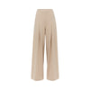 Realizzati con contropieghe che creano volume i pantaloni in cady di misto viscosa stretch mano calda. hanno bacino liscio con tagli, chiusura con zip al fianco, tasche laterali, filetti sul retro.