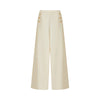 Zoom Pantaloni donna crema a gamba larga con bottone laterale