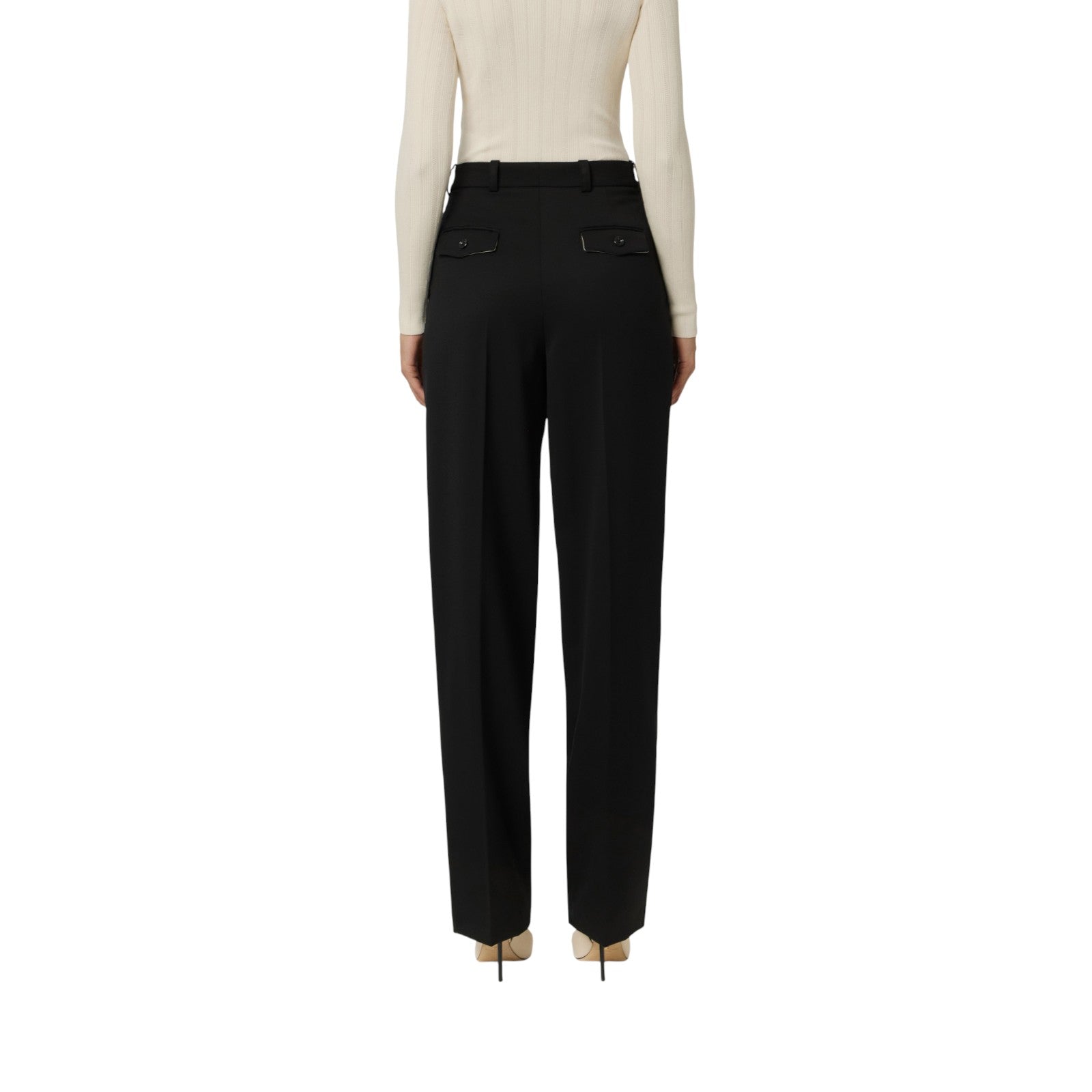 Pantaloni in fresco lana dalla vestibilità over. Con costruzione sartoriale, hanno doppia pinces sul davanti e interno con fascione in cotone diagonale. Completi di tasche anteriori e patte con bottoni sul retro.