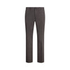 Pantaloni chino grigi. Realizzati in cotone stretch. Piega stirata. Tasche sui fianchi. Tasche a filetto sul retro. Risvolto al fondo. Chiusura con bottone e zip coperta.