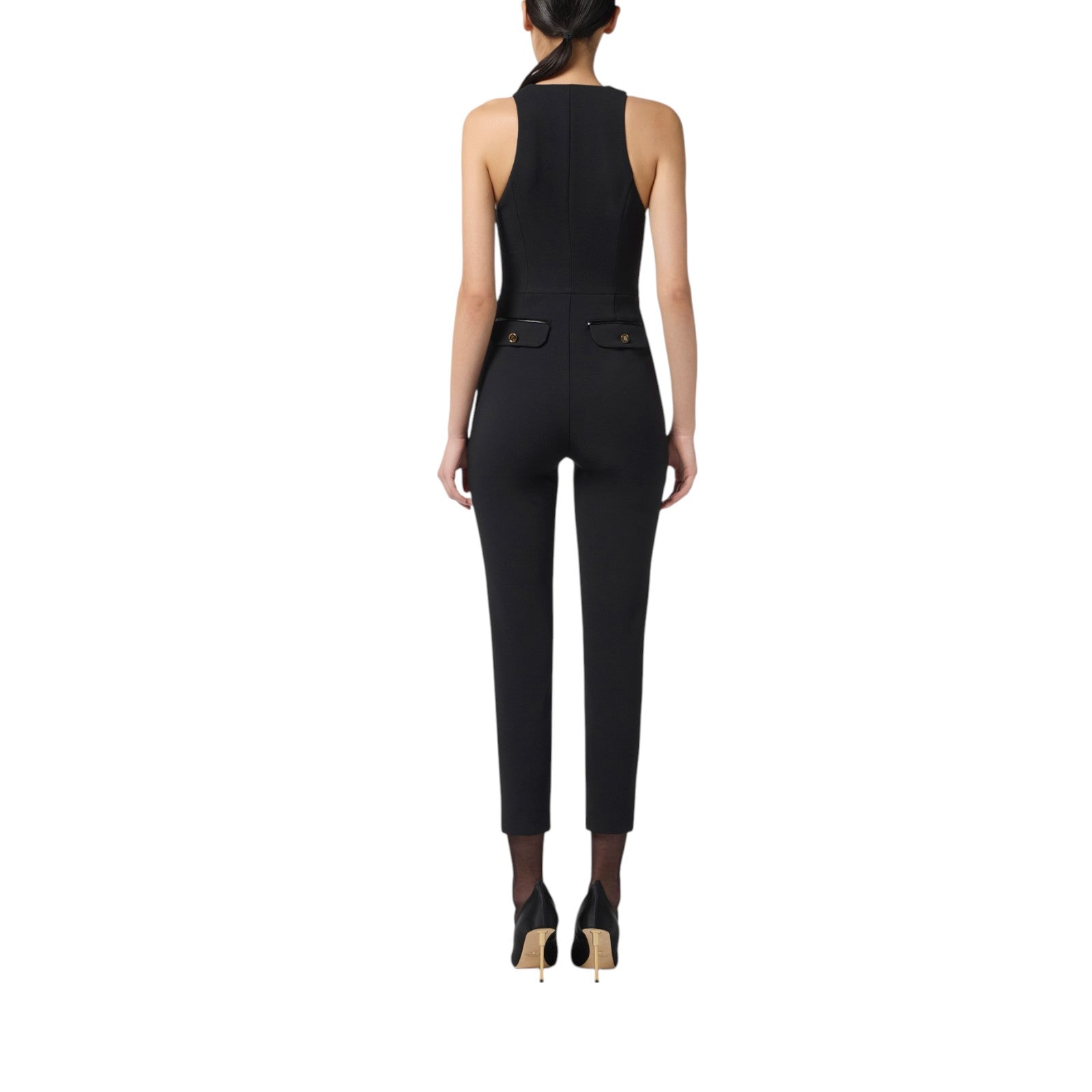 Tuta in doppio crêpe dalla vestibilità aderente. Con scollo all'americana, ha dettagli con zip incorniciati da filetti in tono. Le patte con bottone sul retro completano il capo. Parte della collezione Essential, per costruire il guardaroba perfetto. La modella è alta 177 cm e indossa una taglia 40 IT