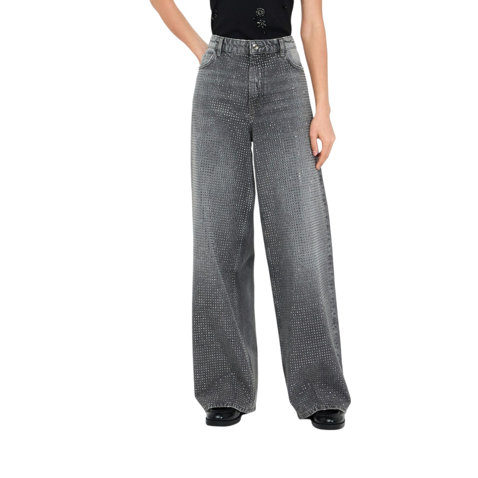 Jeans donna baggy con borchie