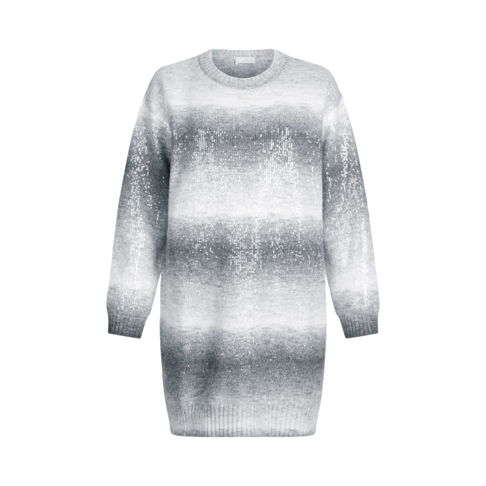 Abito corto in maglia. Filati in misto lana. Girocollo. Paillettes all-over.