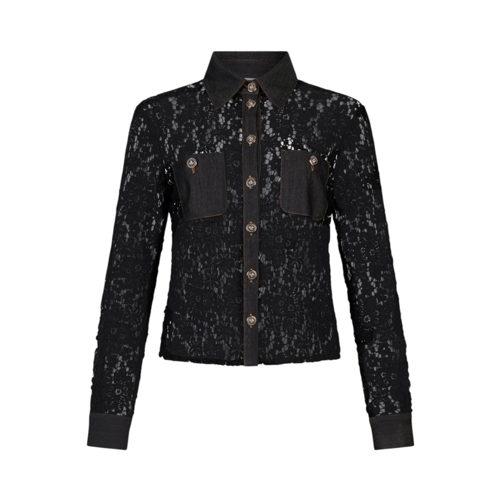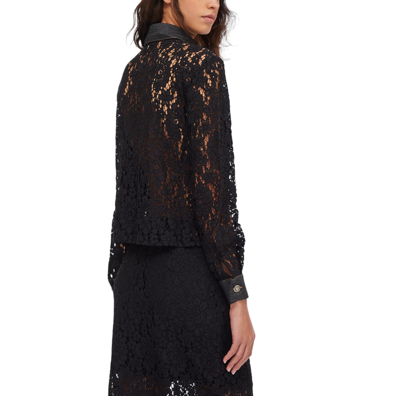 Camicia in pizzo con dettagli in denim.