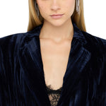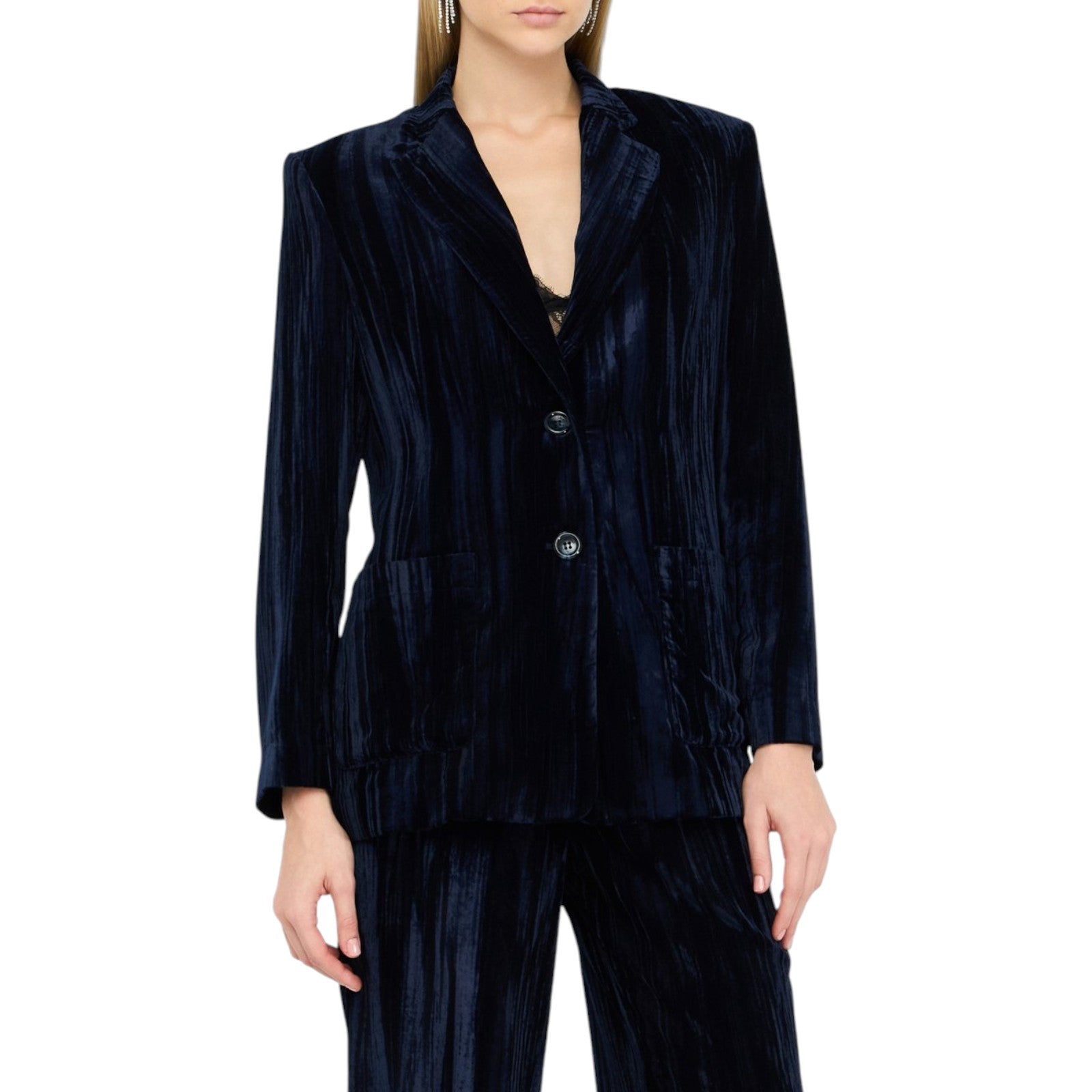 Blazer in velluto. Revers classico. Tasche sui lati. Chiusura monopetto con bottoni. Fodera interna.
