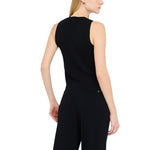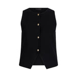 Gilet in maglia di misto viscosa. Scollo rotondo. Chiusura con bottoni logati. La modella è alta 180 cm e indossa la taglia S.