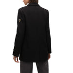 Blazer doppiopetto in tessuto di alta qualità con dettagli ricamati e gioielli. Design elegante con chiusura doppia e risvolto classico. Tasche frontali simulate per una finitura moderna. I dettagli gioiello aggiungono un tocco di lusso e distinzione, perfetto per ogni occasione formale.