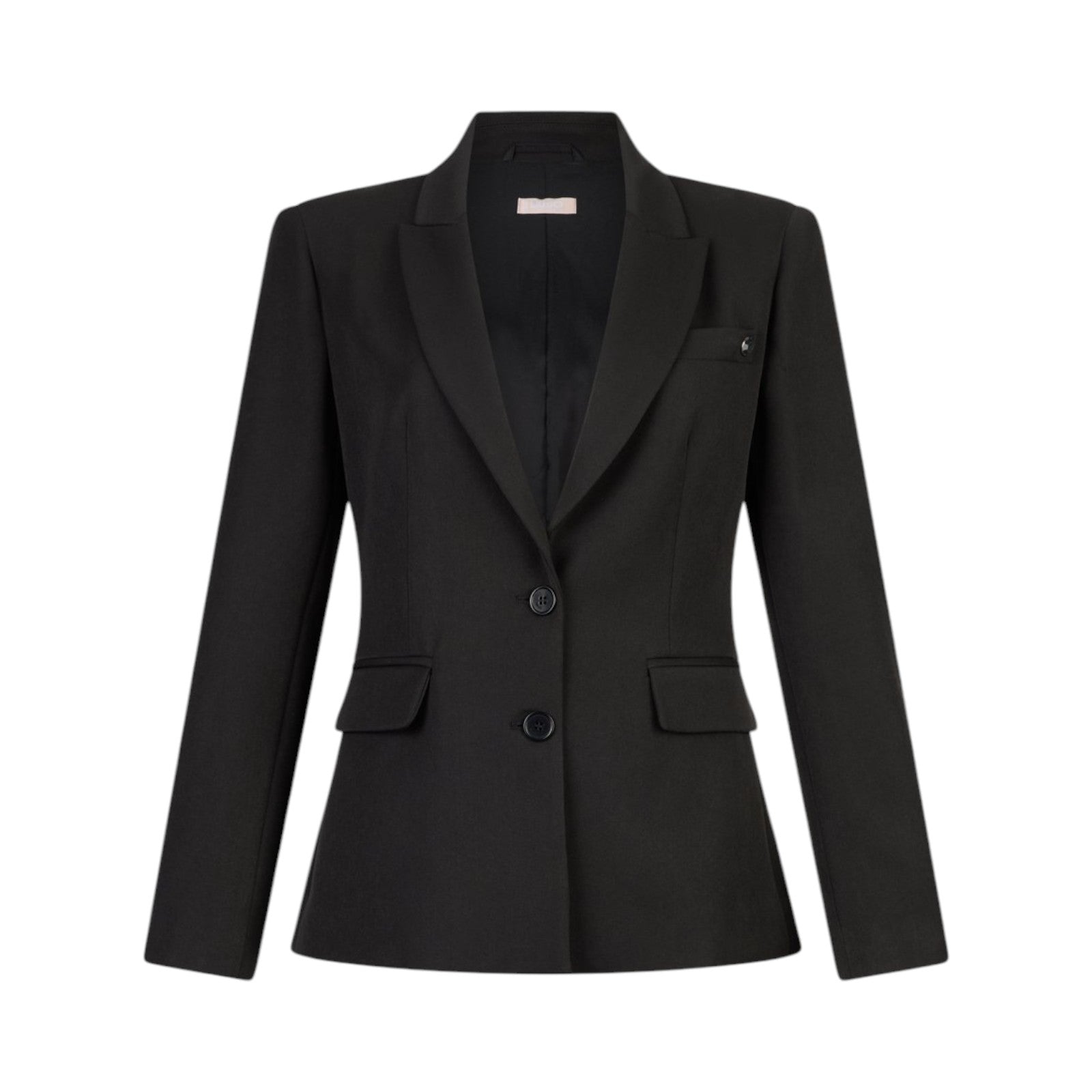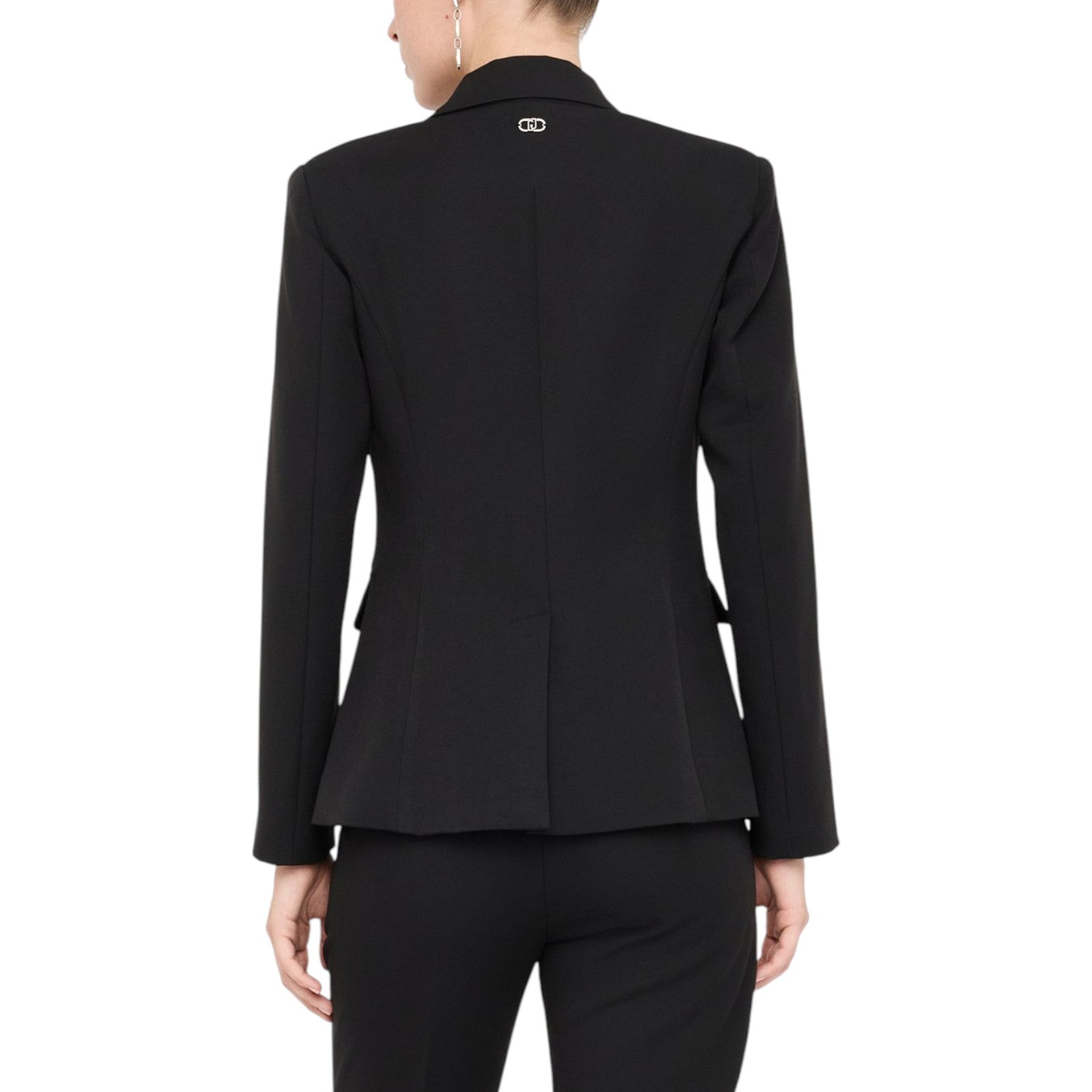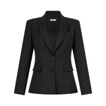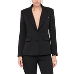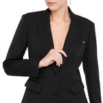 Blazer donna in tessuto tecnico stretch. Filati in misto viscosa. Slim fit. Rever classico. Tasca a filetto con castone gioiello. Tasche con patta. Spacchetto sul dietro. Chiusura monopetto a due bottoni.