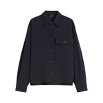 Giacca in jersey flanella di misto cotone. Linea boxy. Colletto e polsini a camicia. Maniche lunghe a giro basso. Chiusura frontale con bottoni a vista. Tasca sinistra a toppa con patta e bottone sul petto. Fondo più lungo sul retro con spacchi laterali squadrati.