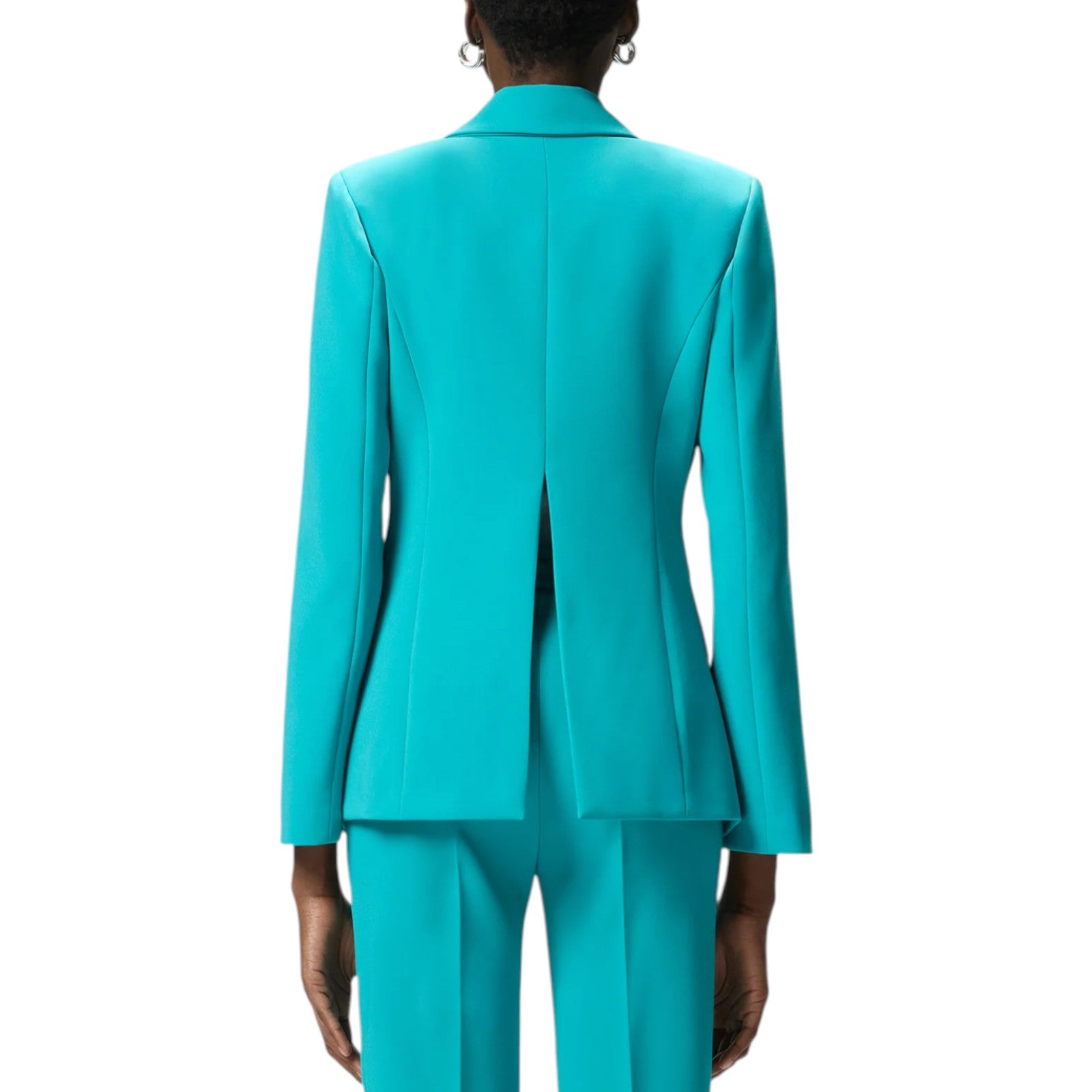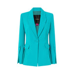Giacca foderata in leggera georgette e realizzata in tela tecnica, un tessuto comodo e traspirante per un mix irresistibile di funzionalità ed eleganza contemporanea. Il capo, dotato di revers a lancia, due tasche frontali con patta e un taschino a filetto sul petto, non rinuncia alla preziosità, data dal bottone gioiello che caratterizza la chiusura monopetto. Il modello si distingue inoltre per i raffinati spacchi, presenti sotto le tasche, sul retro, e a fondo manica, dove sono accompagnati da un bottone rivestito.