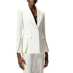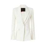 Giacca foderata in leggera georgette e realizzata in tela tecnica, un tessuto comodo e traspirante per un mix irresistibile di funzionalità ed eleganza contemporanea. Il capo, dotato di revers a lancia, due tasche frontali con patta e un taschino a filetto sul petto, non rinuncia alla preziosità, data dal bottone gioiello che caratterizza la chiusura monopetto. Il modello si distingue inoltre per i raffinati spacchi, presenti sotto le tasche, sul retro, e a fondo manica, dove sono accompagnati da un bottone rivestito.