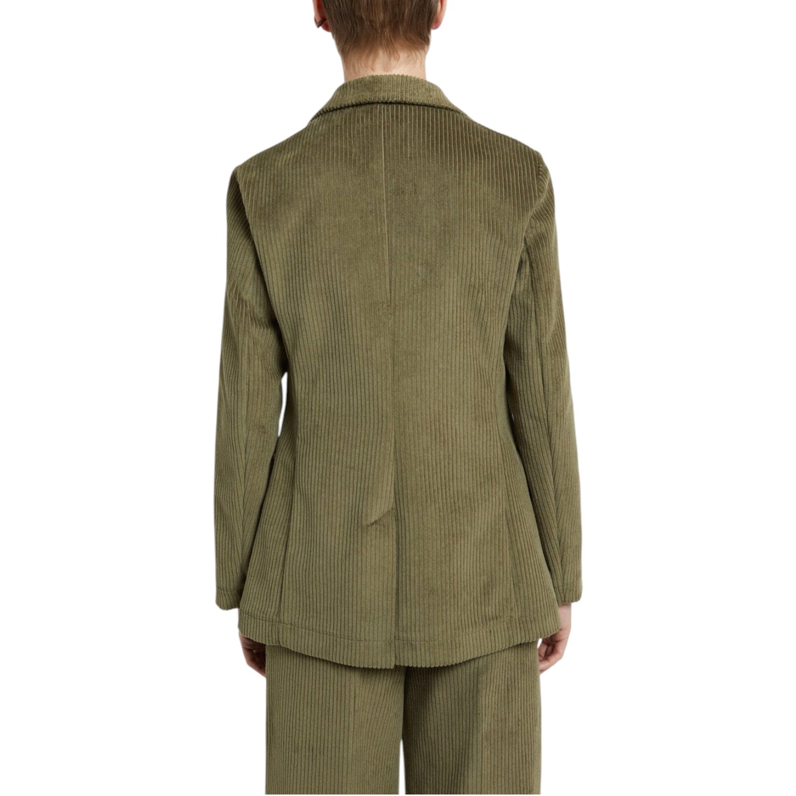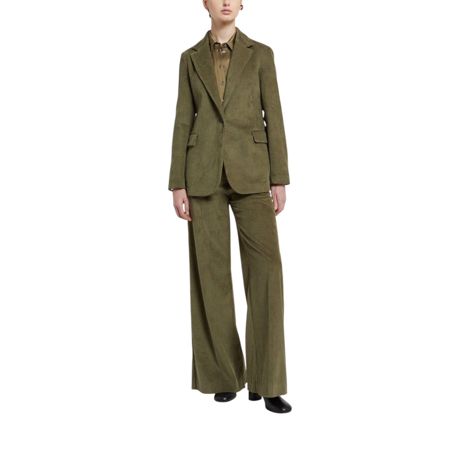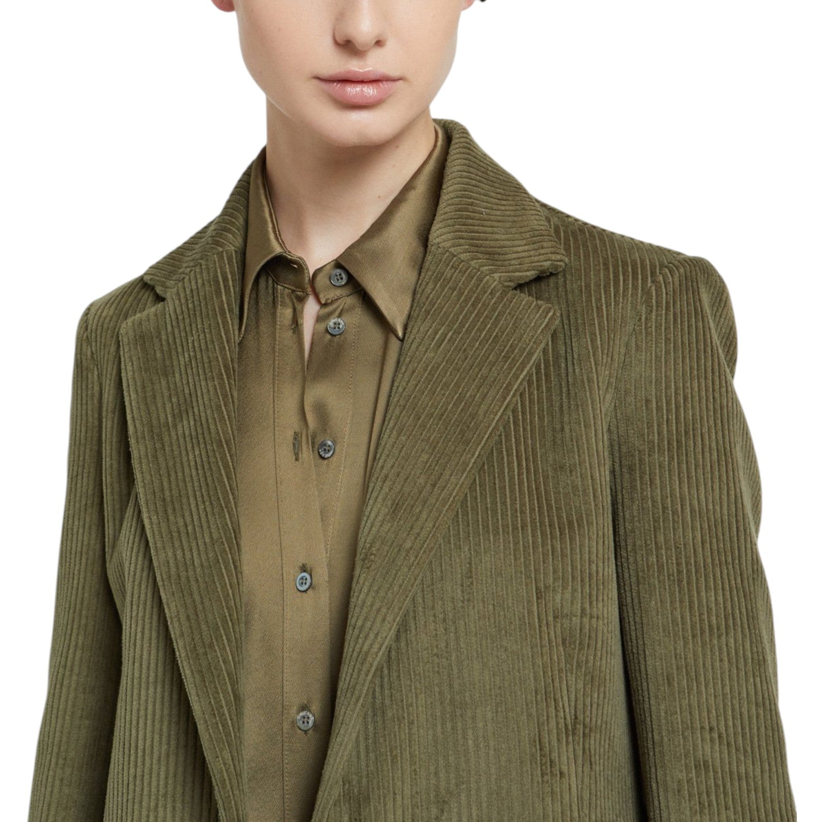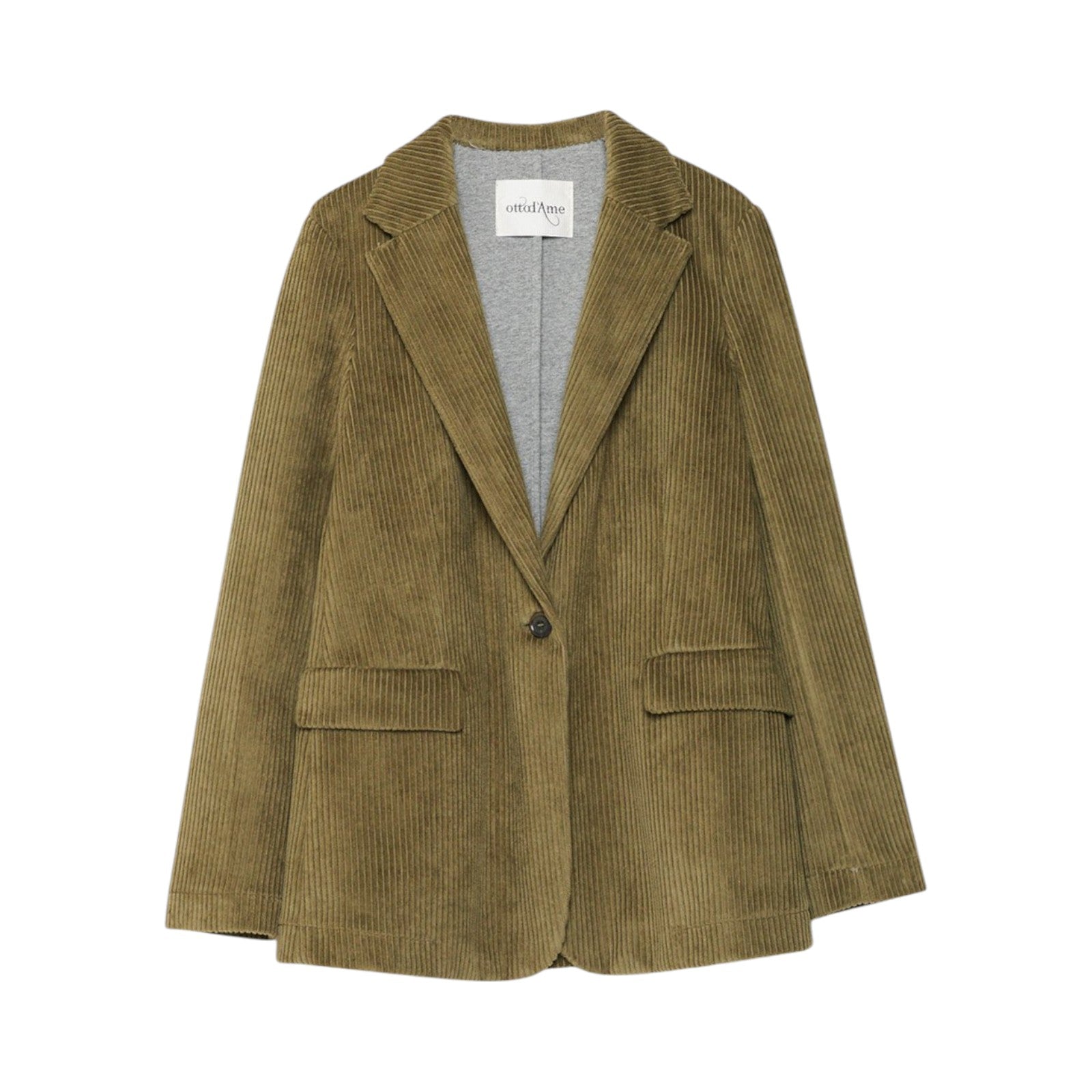 Giacca 1 bottone in velluto di cotone a costa larga e fodera.