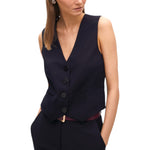 Gilet sartoriale realizzato in tessuto a righe. Design aderente con chiusura a bottoni sul davanti e retro a pois a contrasto.