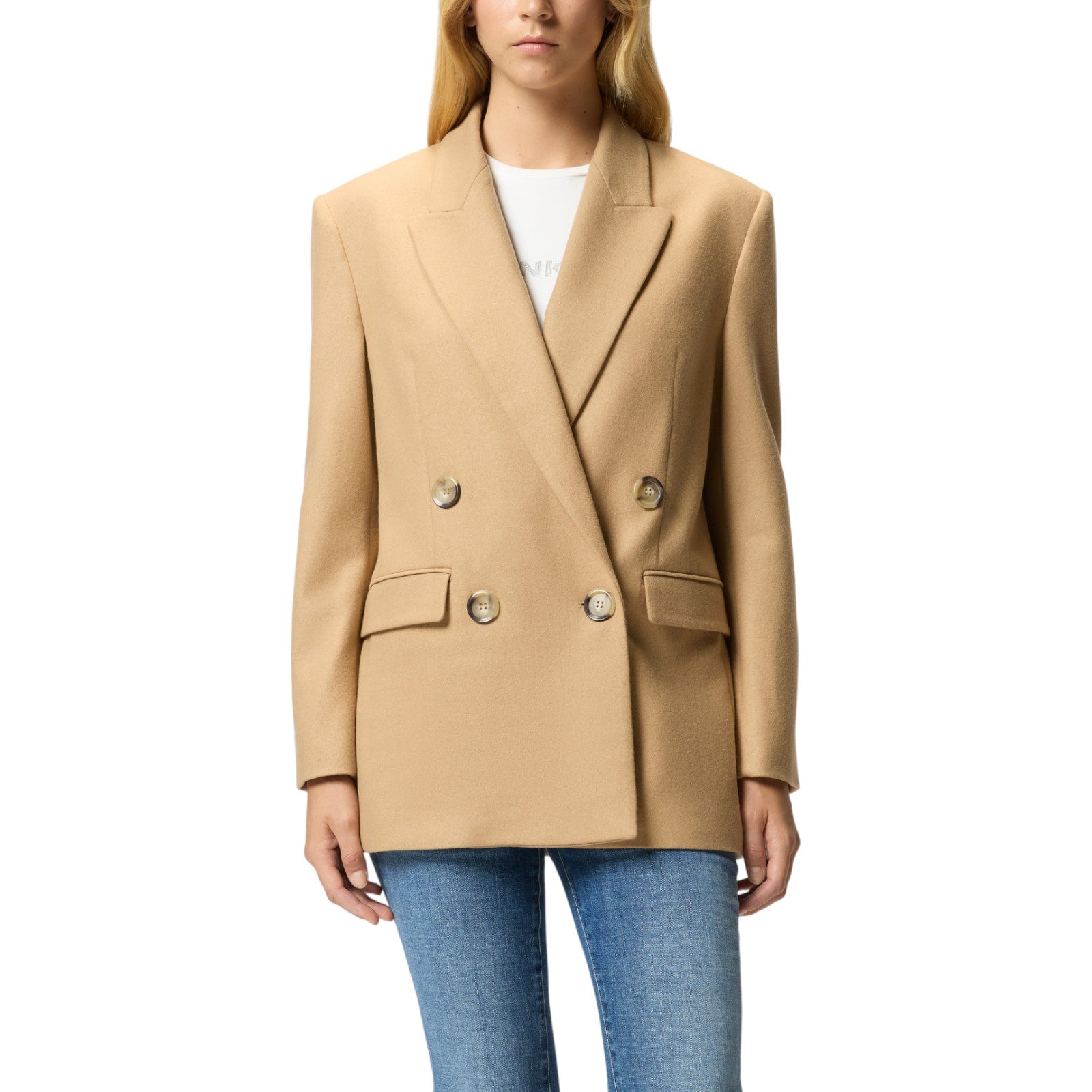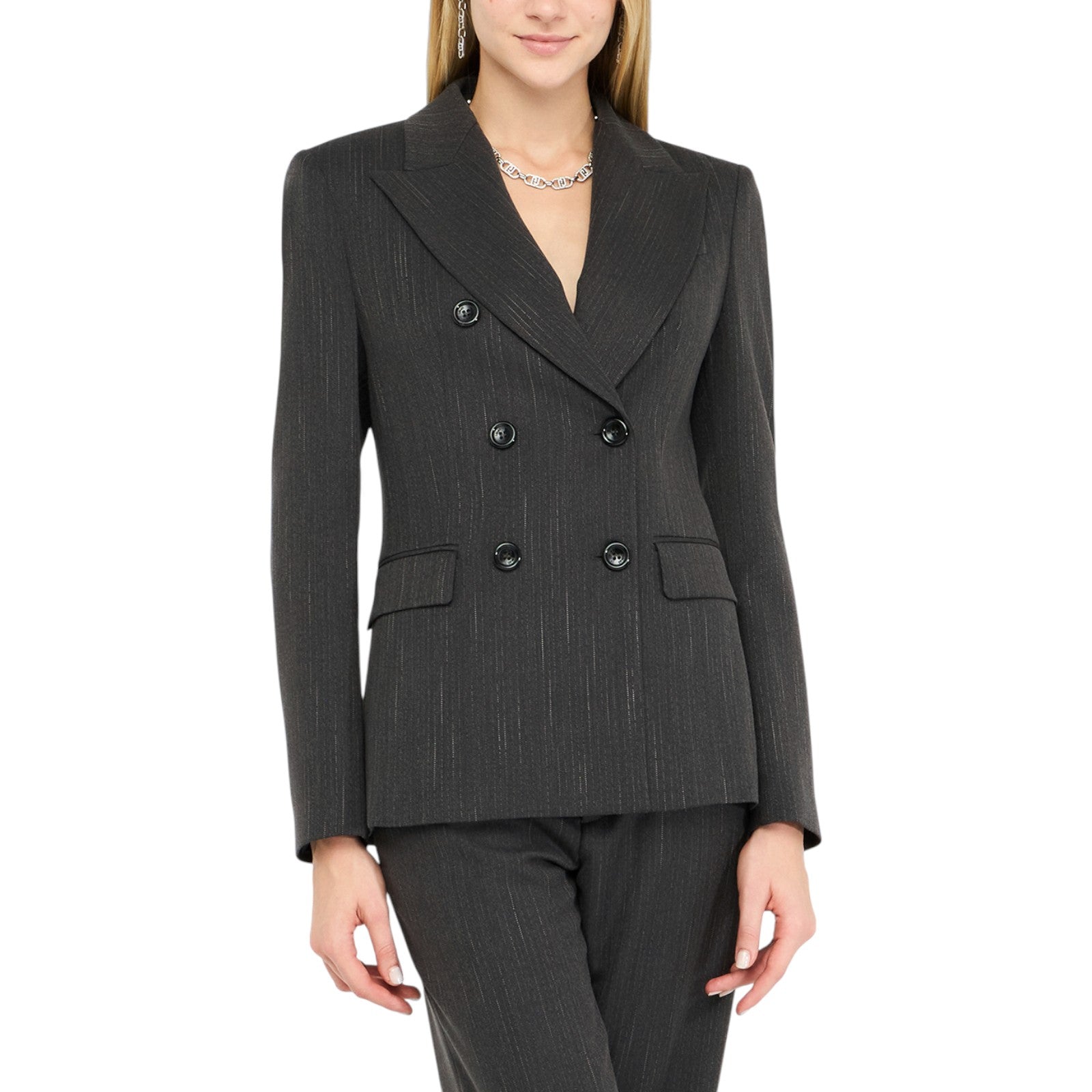 Blazer donna a righe con dettaglio gioiello sul bavero