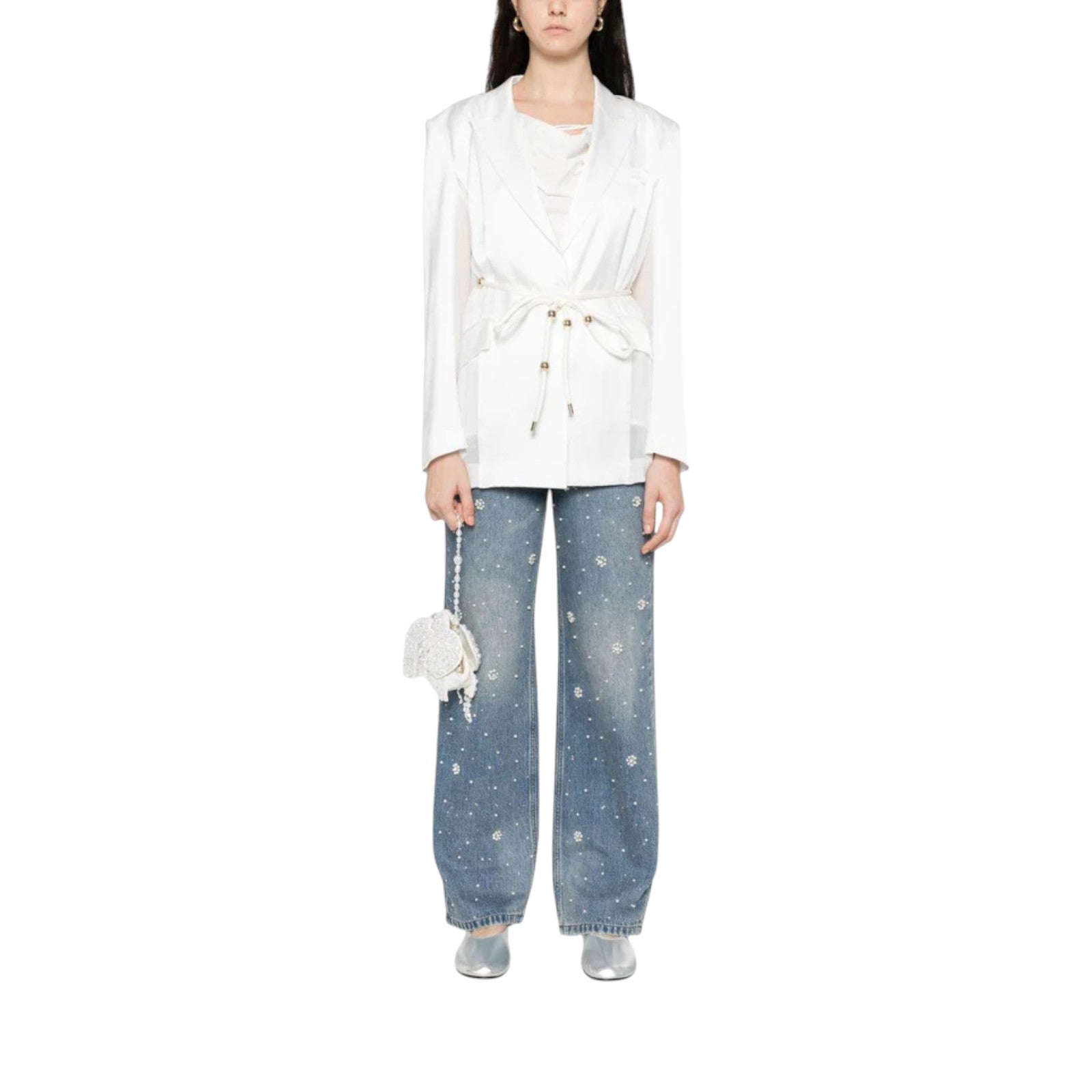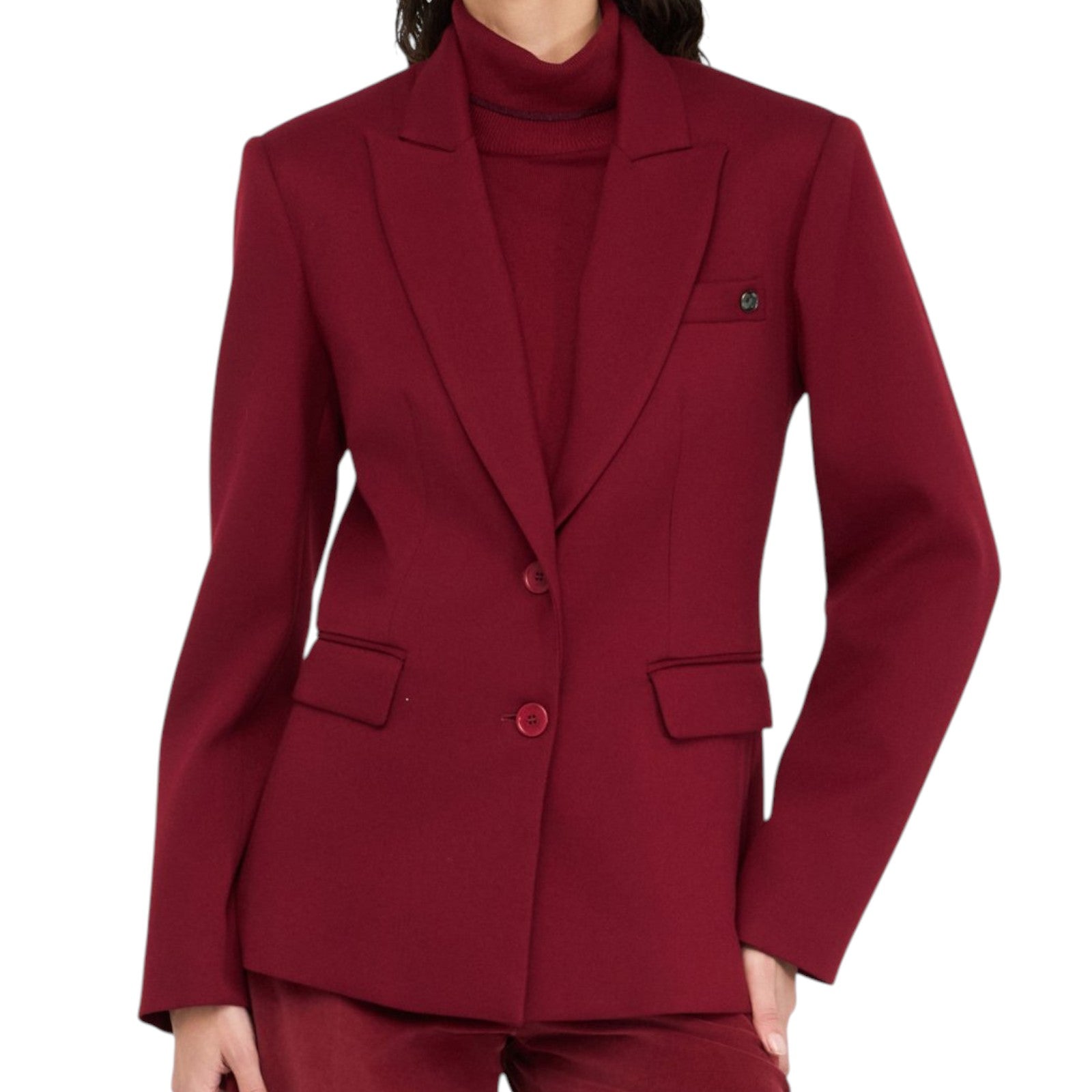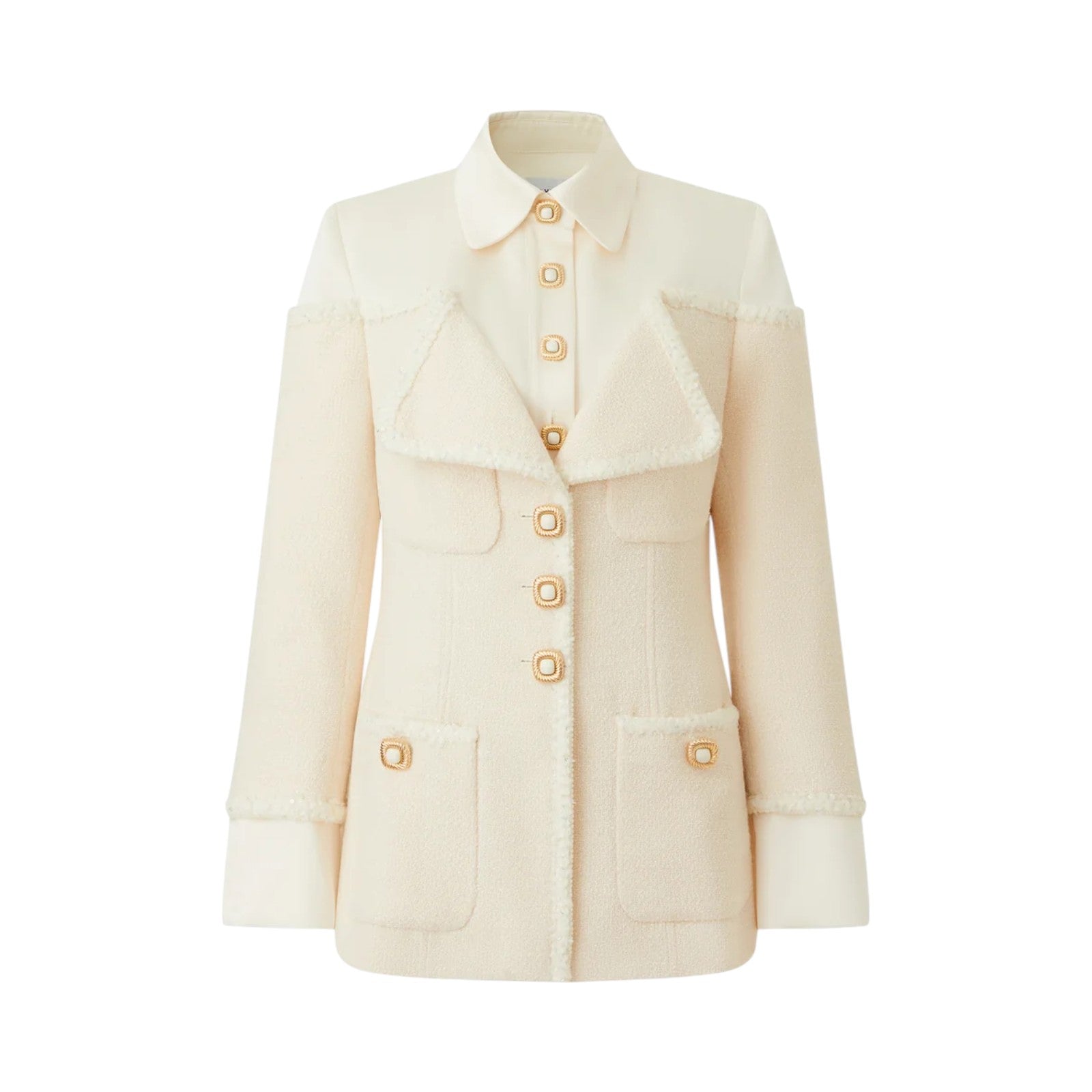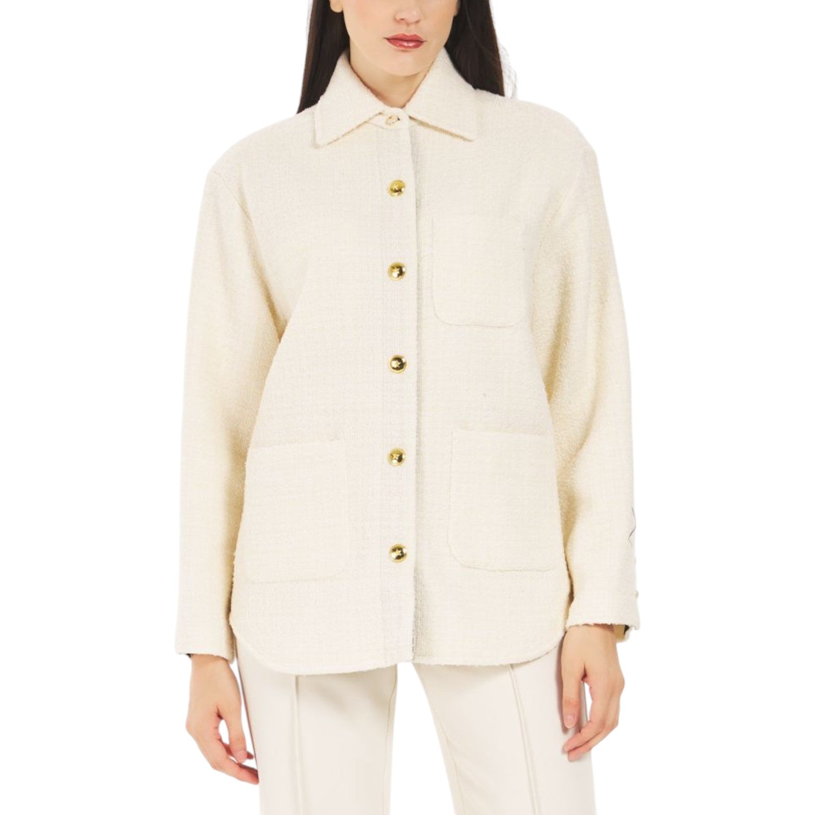 Giacca donna due in uno crema con colletto a camicia e bottoni dorati