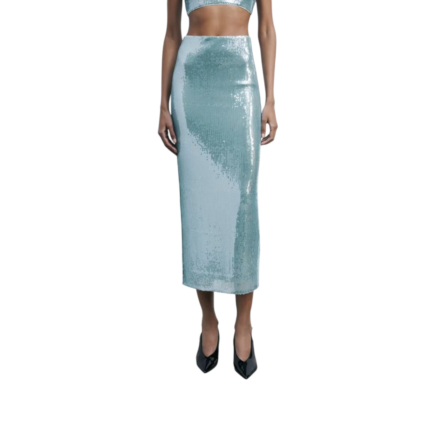 Tulle elasticizzato. Vestibilità slim. Vita all'ombellico. Lunghezza alla caviglia. Tirazip con Fly.