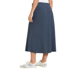 Gonna passepartout in tessuto super-stretch: uno "scuba crepe" dalla caduta fluida caratterizzato da un rovescio raso che dona una piacevole sensazione sulla pelle. Punto vita estensibile con elastico inserito all'interno, taglio sbieco, sfoderata.