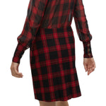 Mini gonna a quadri tartan, toni rossi e neri. Realizzata in lana per un inverno caldo. Chiusura laterale con bottoni dorati decorativi.