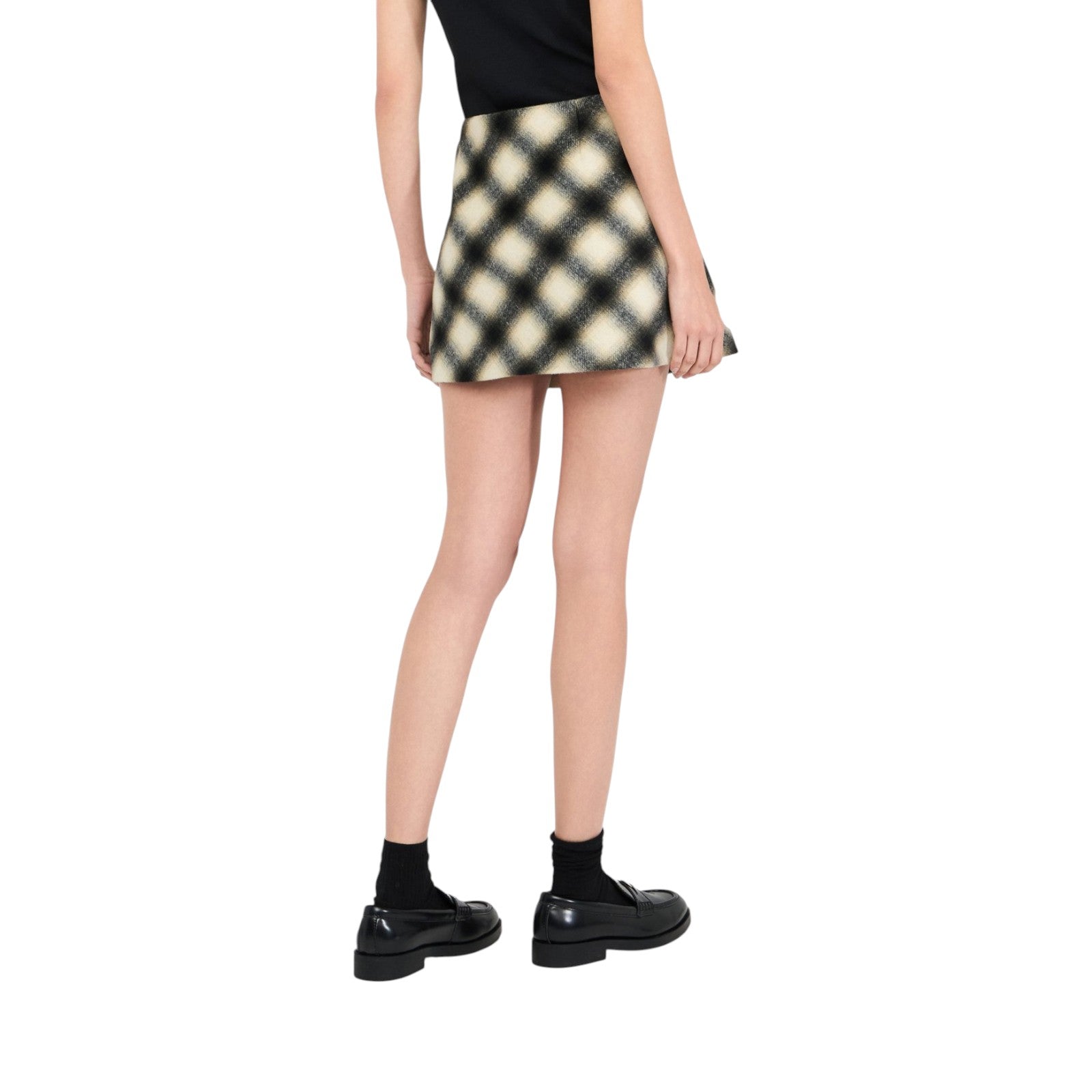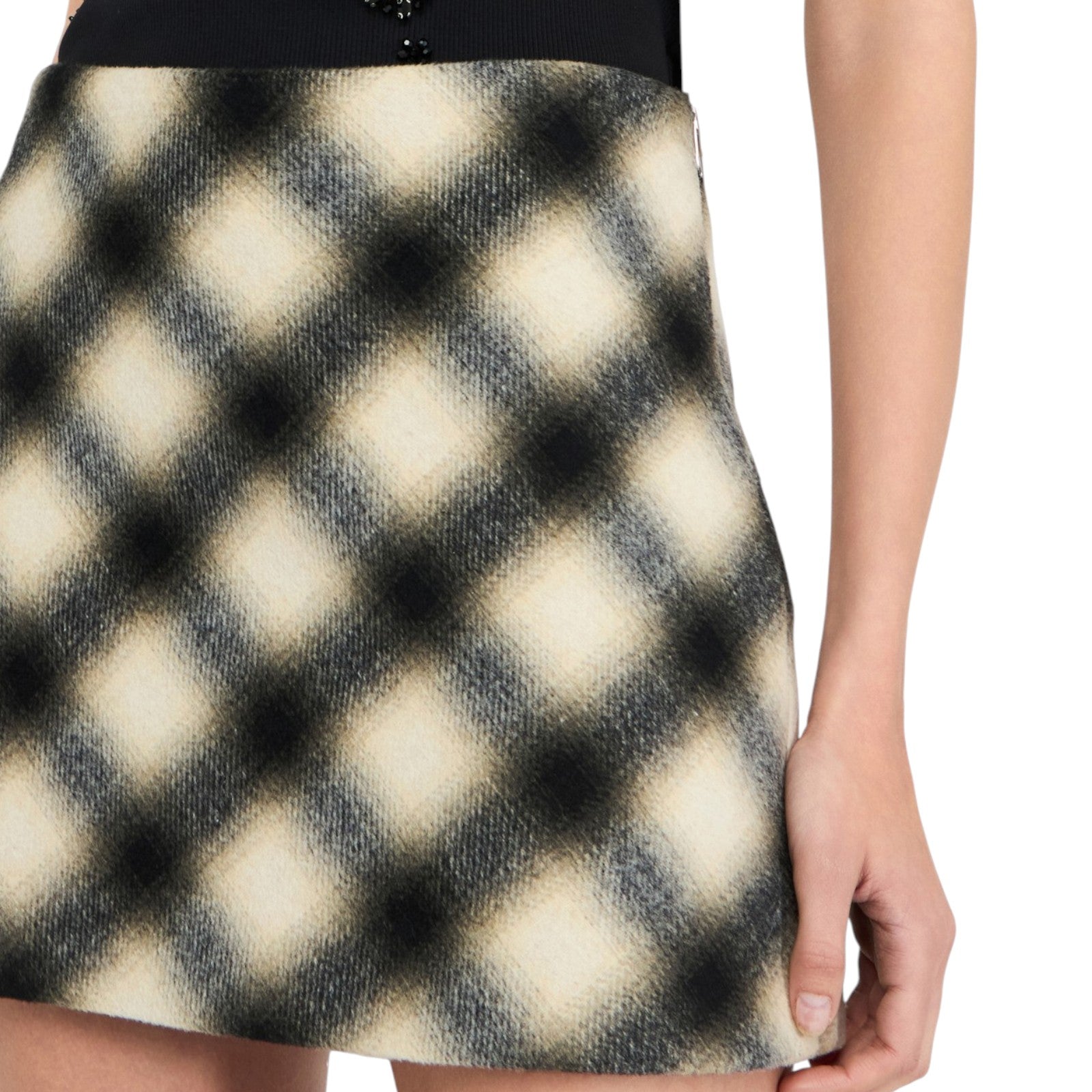 Gonna corta in misto lana. Fantasia a quadri. Chiusura con zip invisibile.